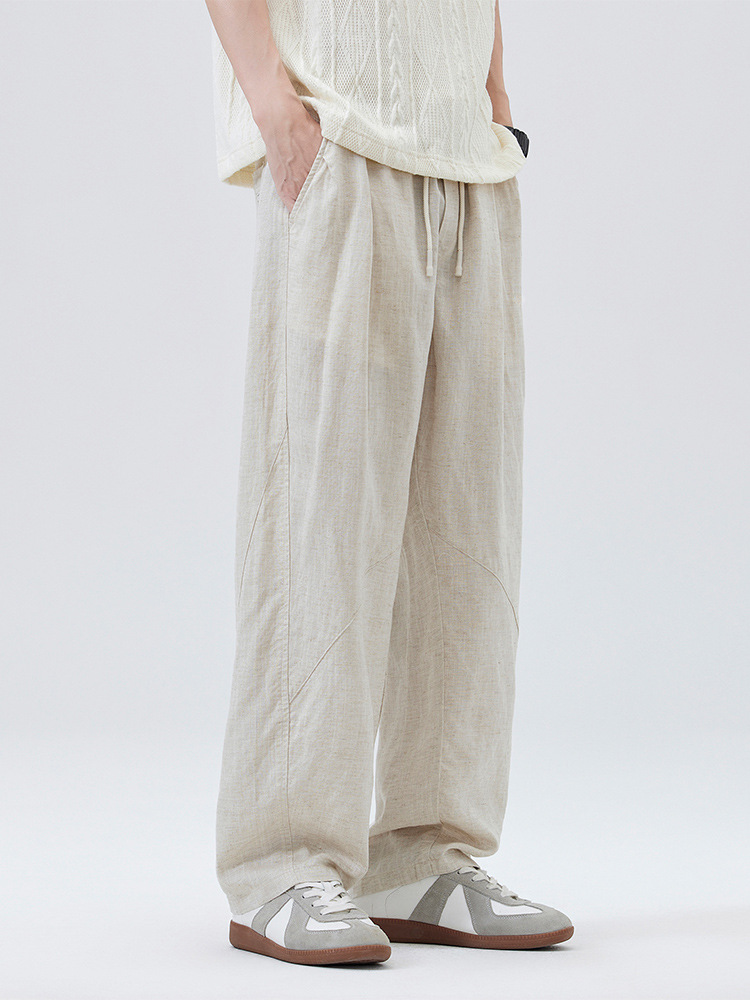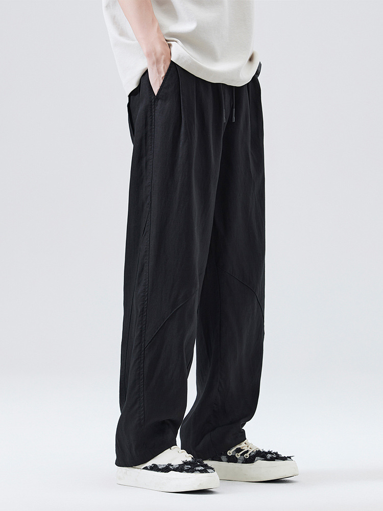 여름 새로운 쿨 Lyocell 리넨 캐주얼 바지 남자 일본 스타일 트렌디 올매치 느슨한 스트레이트 레그 스포츠 바지