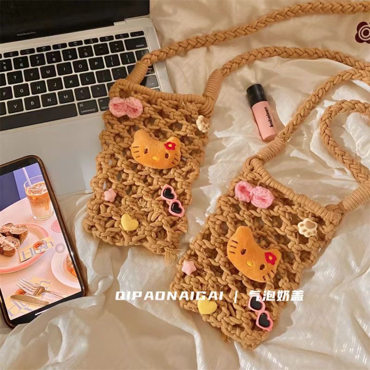 귀여운 하와이안 검은 고양이 수제 가방, 여름 휴가 산책용, 독특한 디자인의 휴대폰 가방