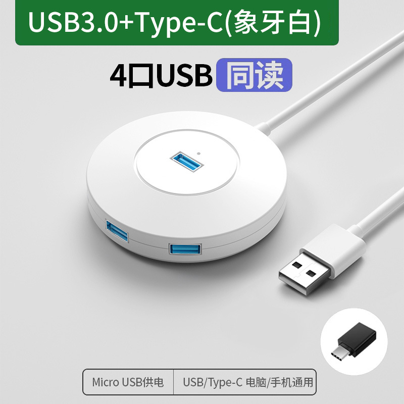• [아이보리 화이트] USB3.0 고속 전송 4포트 + Type-C 인터페이스-0.5m