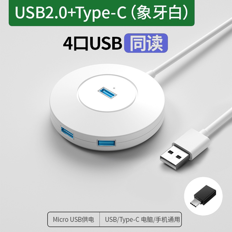 • [아이보리 화이트] USB2.0 고속 전송 4포트 + Type-C 인터페이스-1.5m