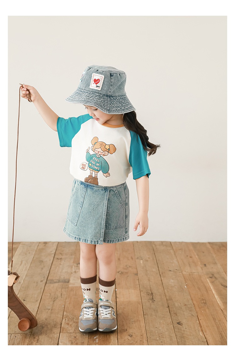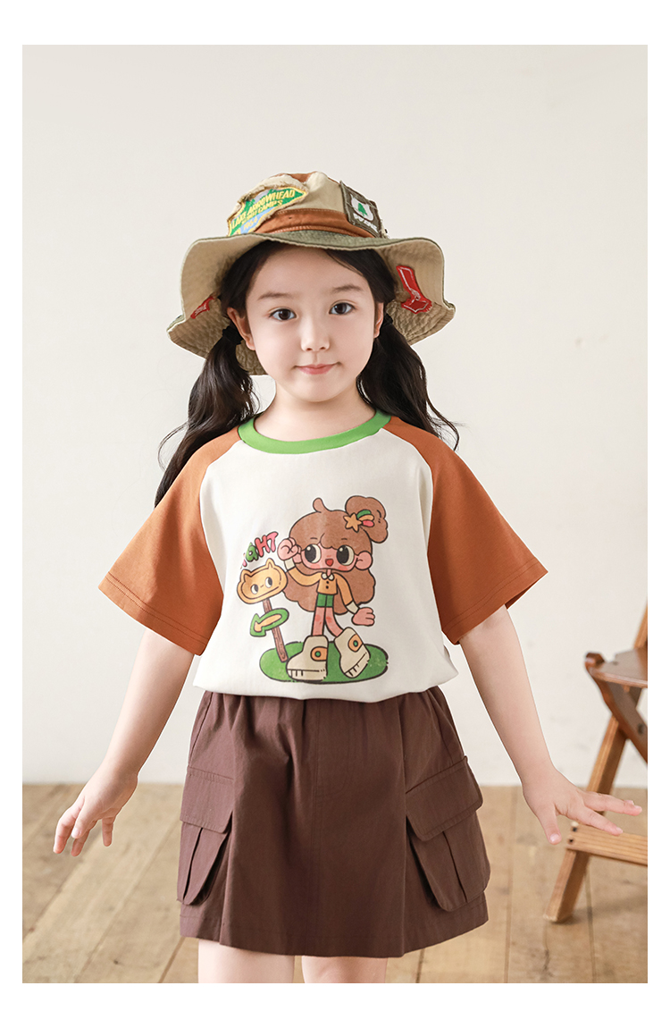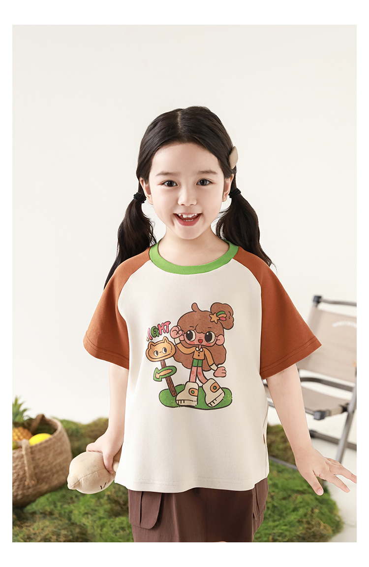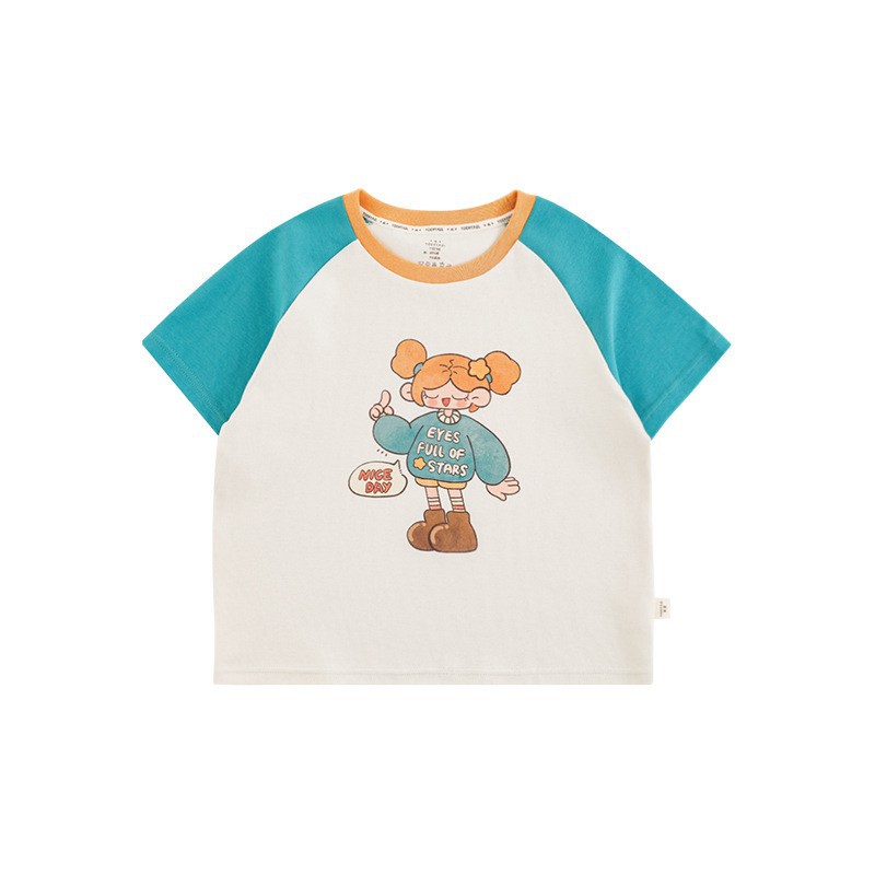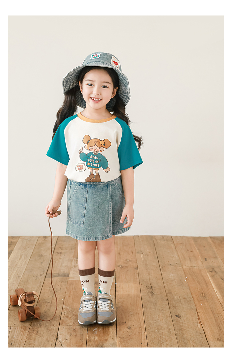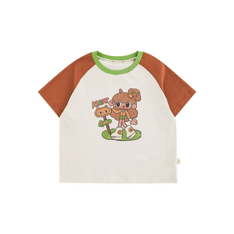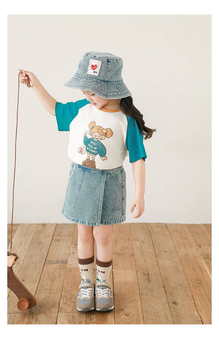 Wulibuyi 소녀 만화 프린트 라글란 슬리브 티셔츠 2025 여름 경량 대비 색상 골지 반팔 탑 트렌디스토어 가기