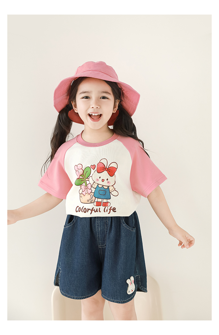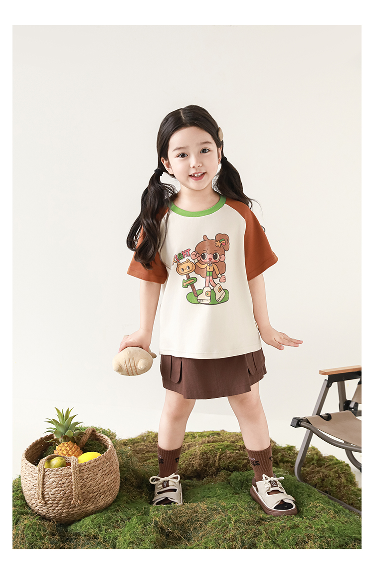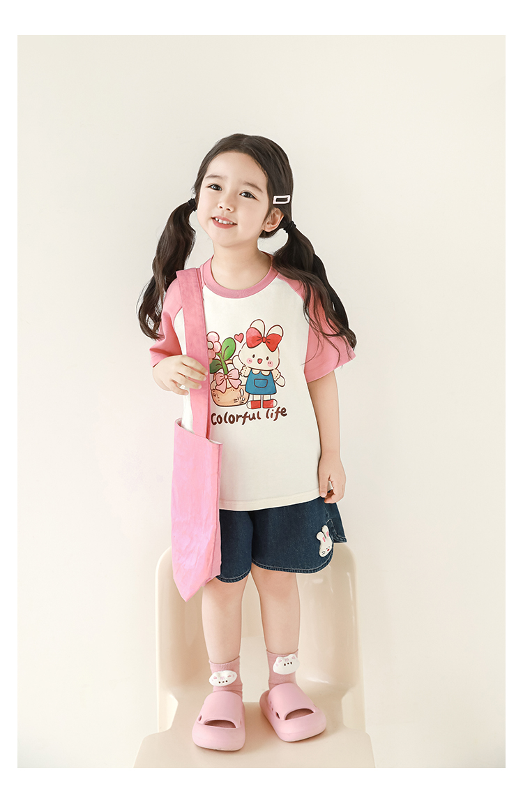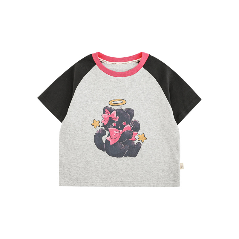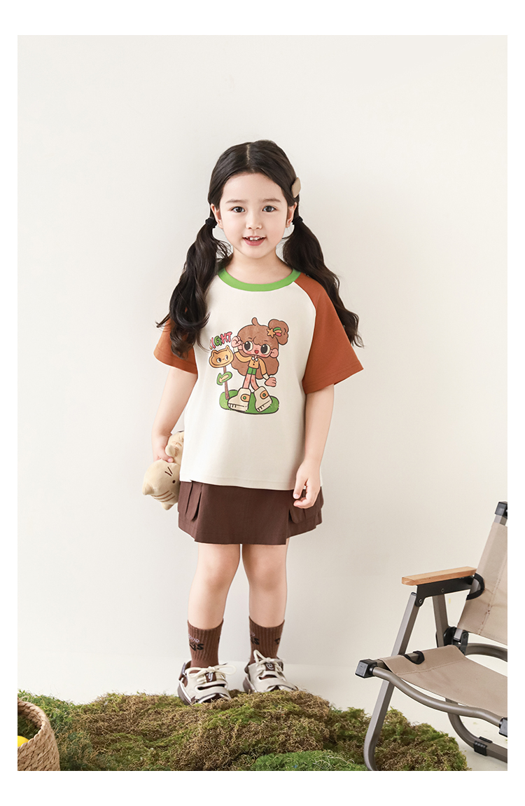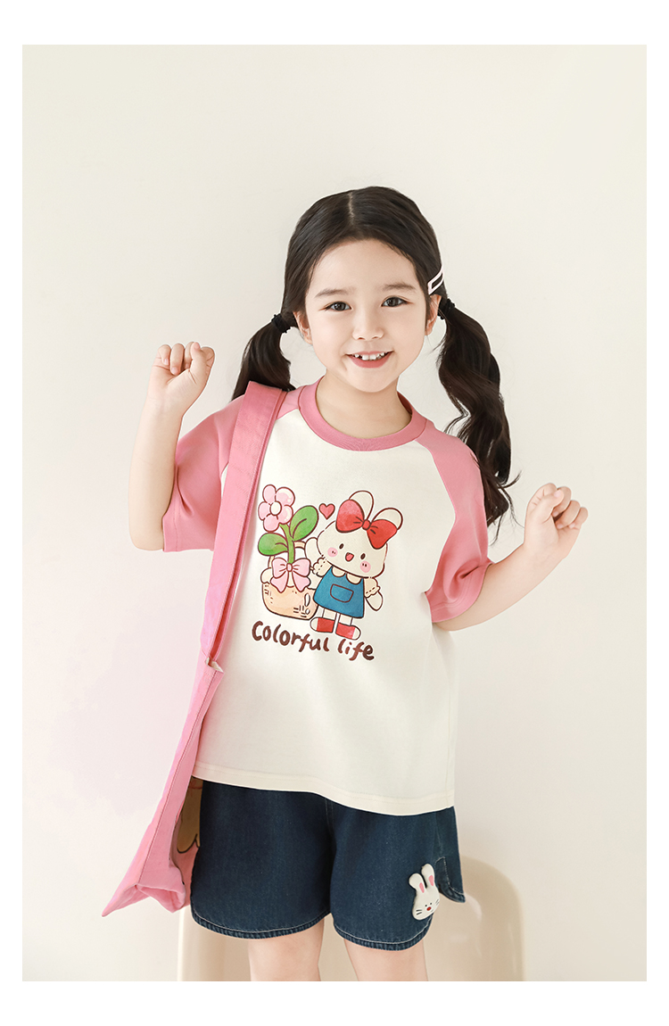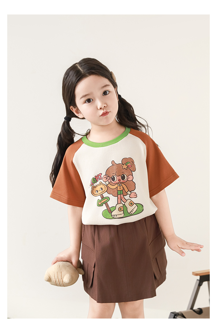 Wulibuyi 소녀 만화 프린트 라글란 슬리브 티셔츠 2025 여름 경량 대비 색상 골지 반팔 탑 트렌디스토어 가기