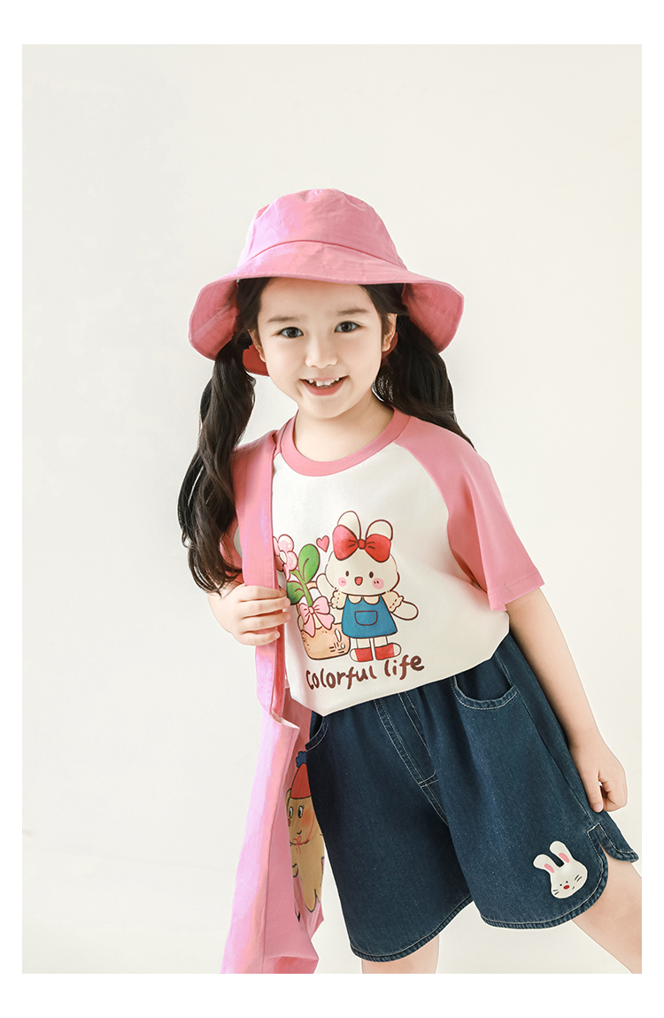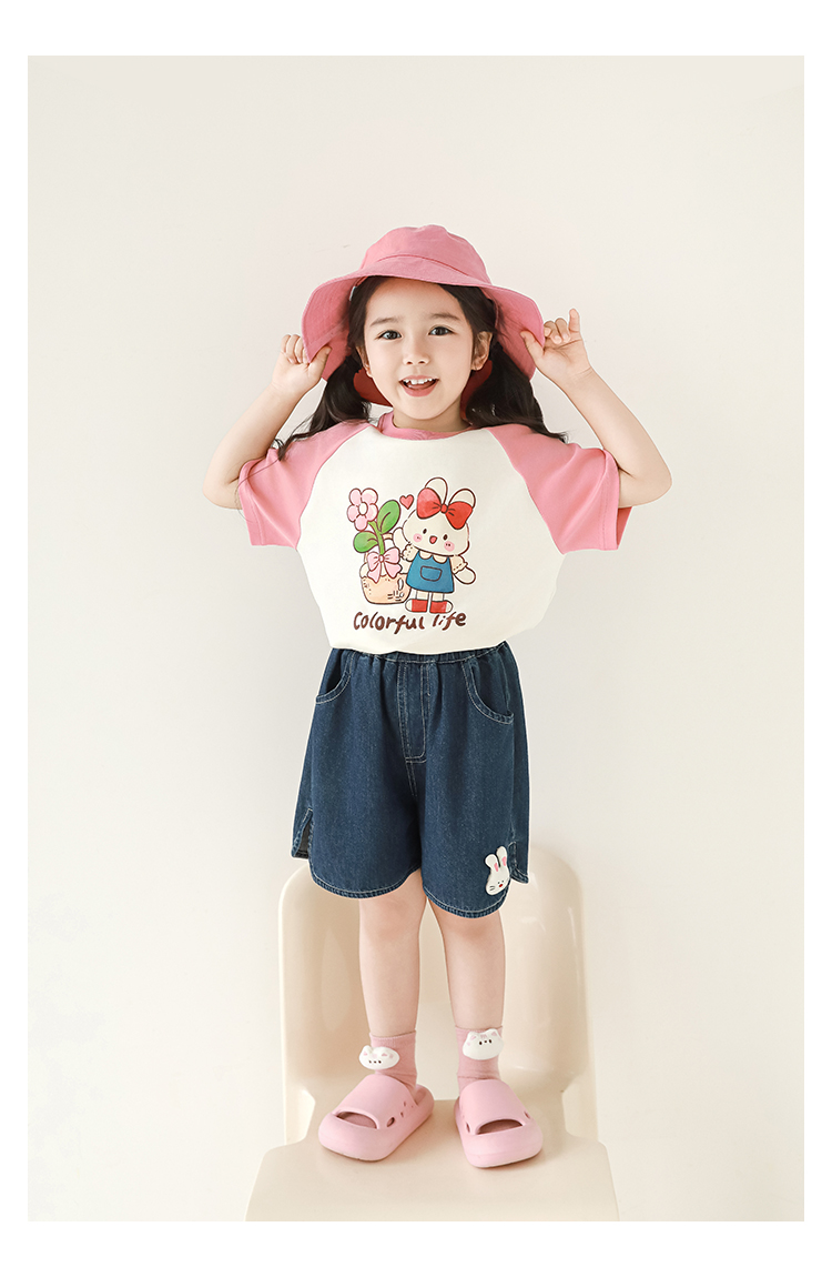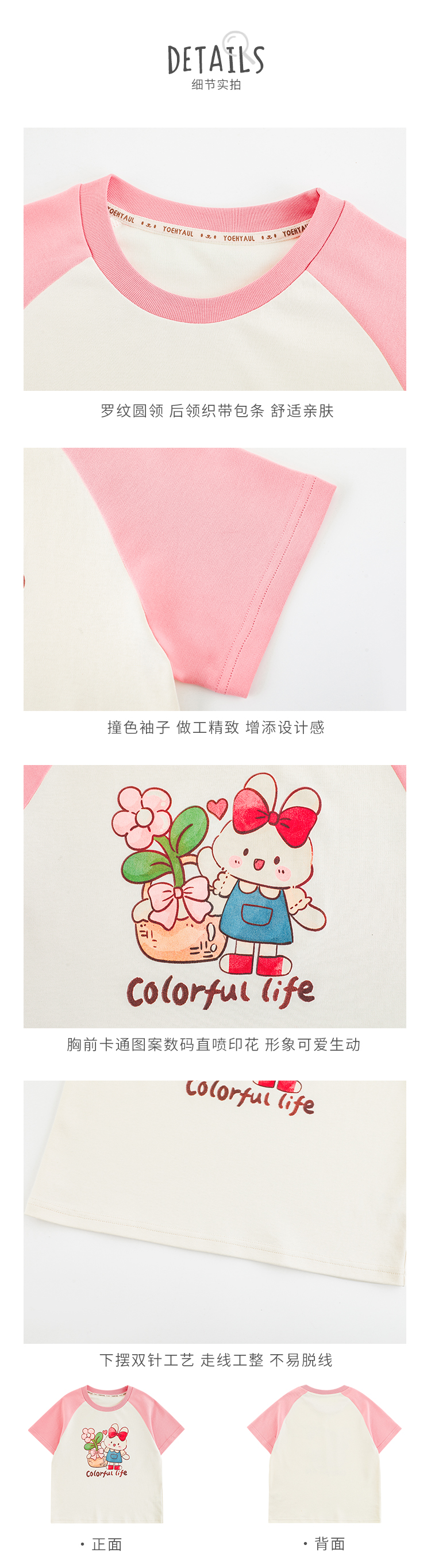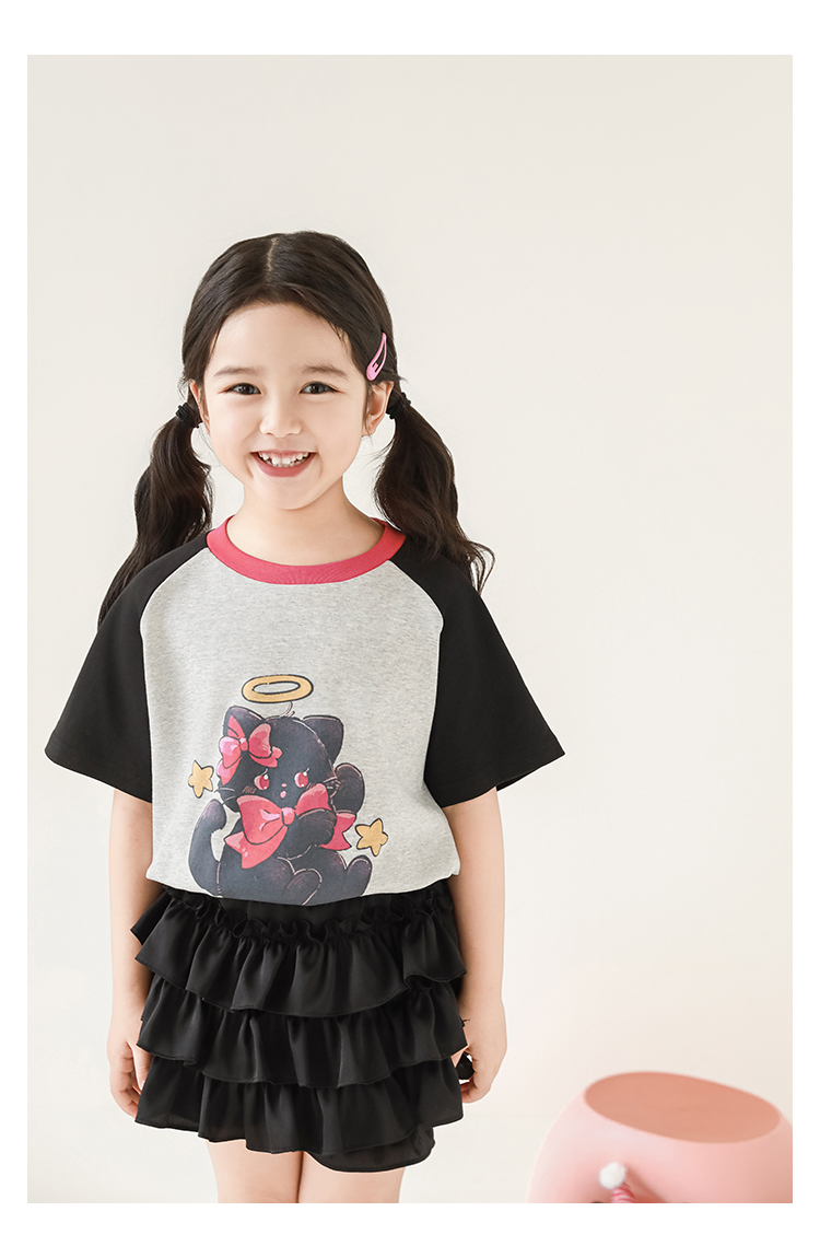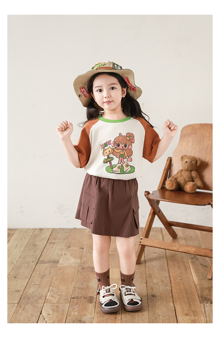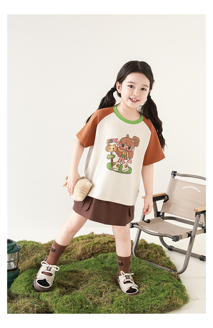 Wulibuyi 소녀 만화 프린트 라글란 슬리브 티셔츠 2025 여름 경량 대비 색상 골지 반팔 탑 트렌디스토어 가기