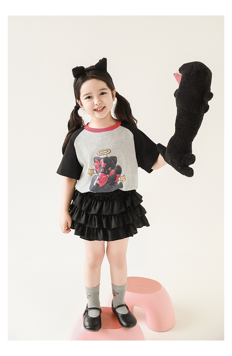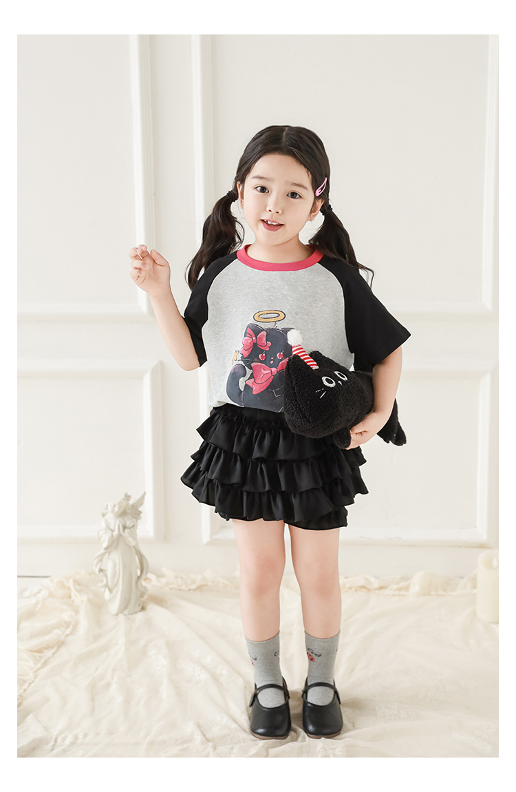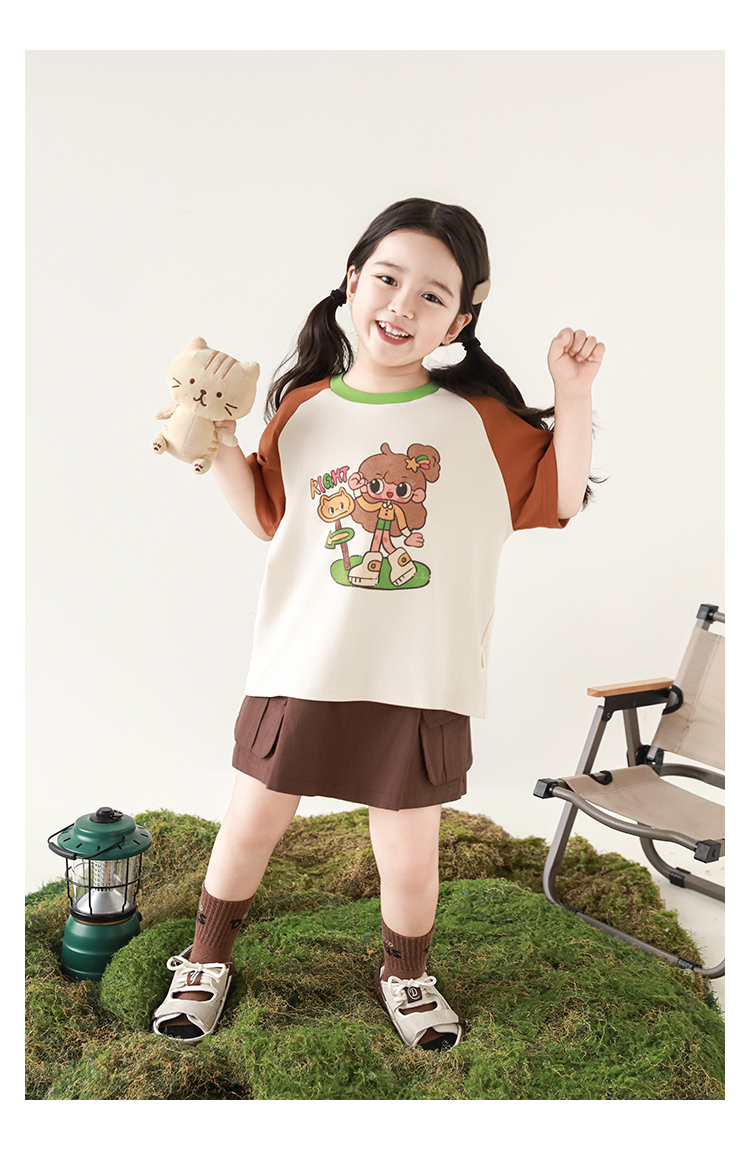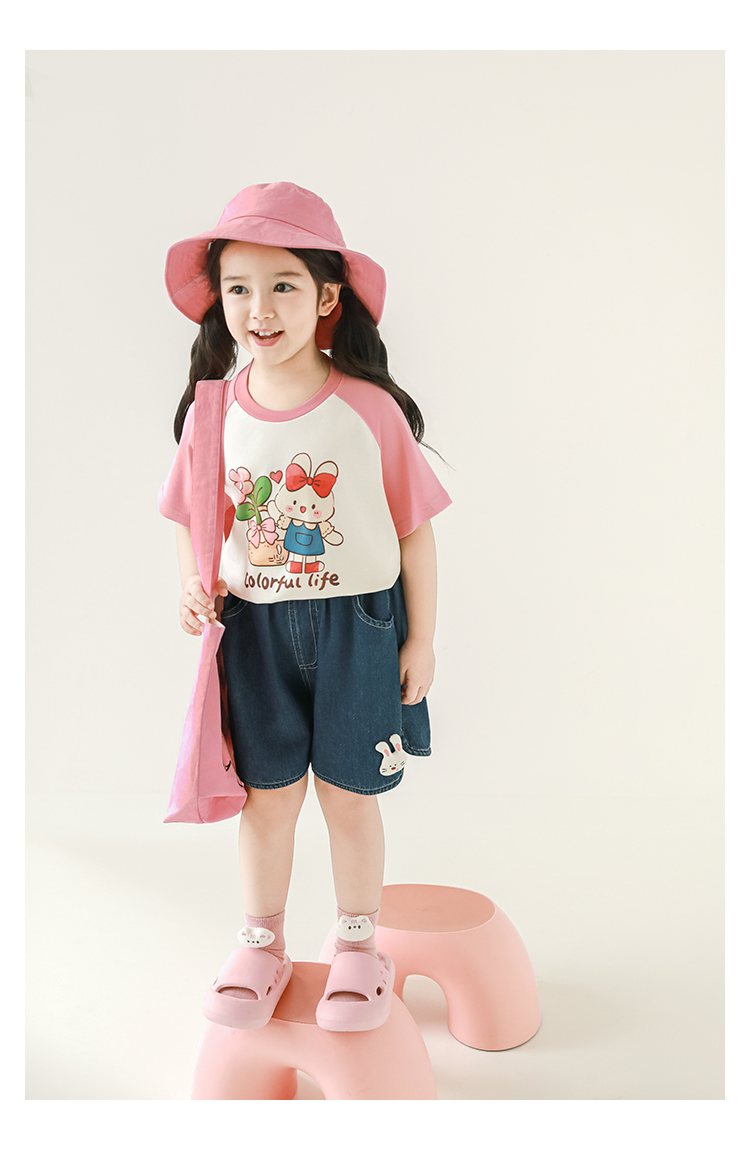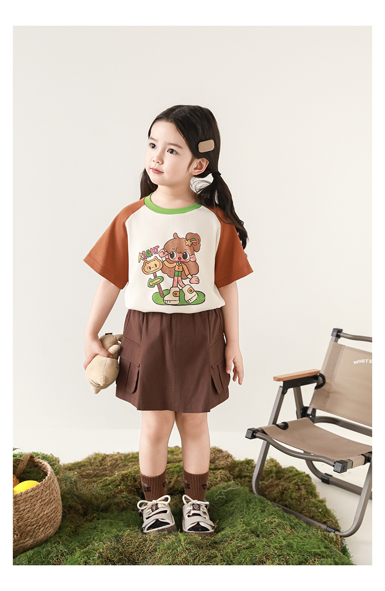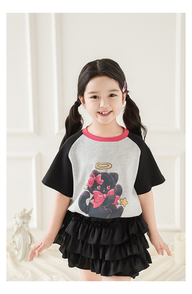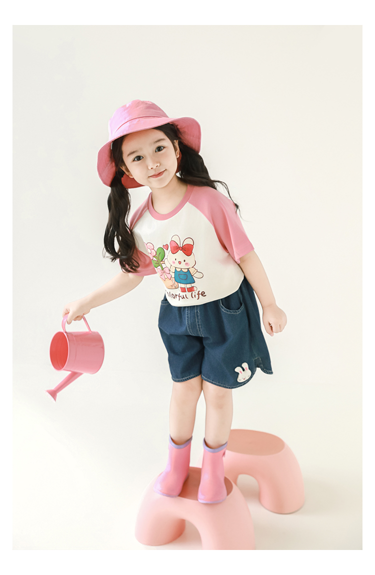Wulibuyi 소녀 만화 프린트 라글란 슬리브 티셔츠 2025 여름 경량 대비 색상 골지 반팔 탑 트렌디스토어 가기