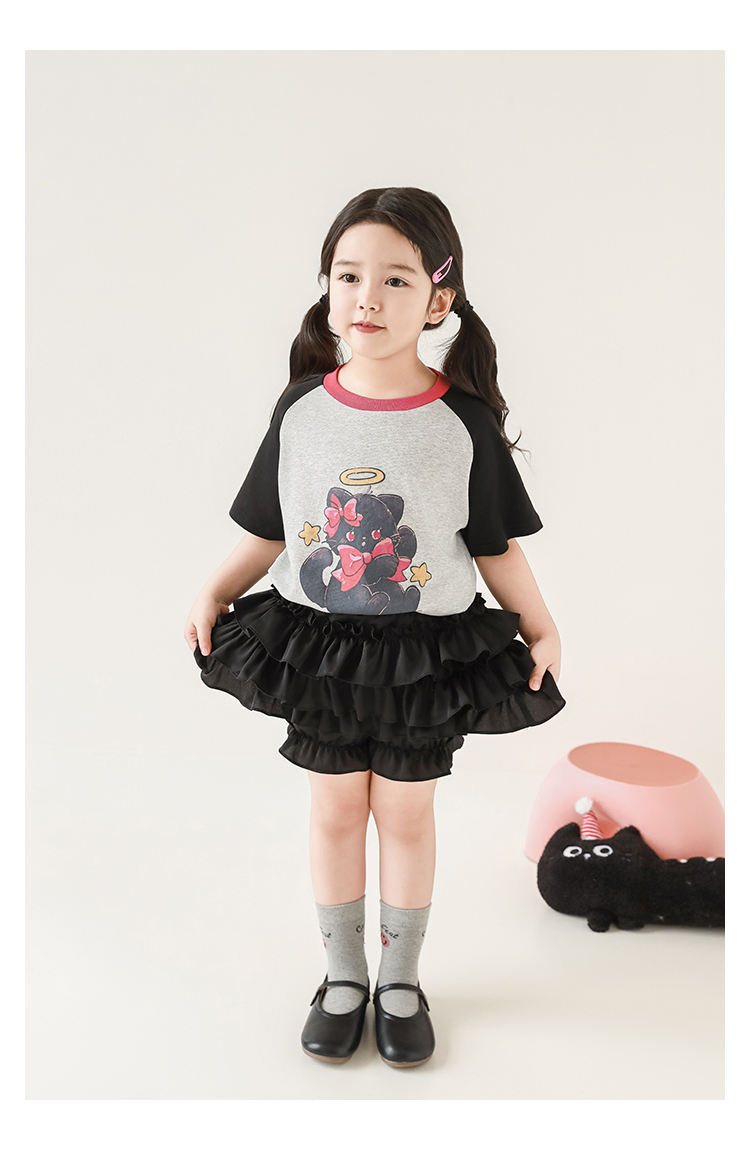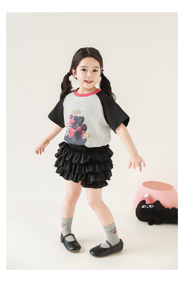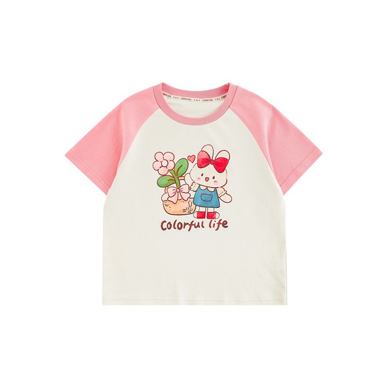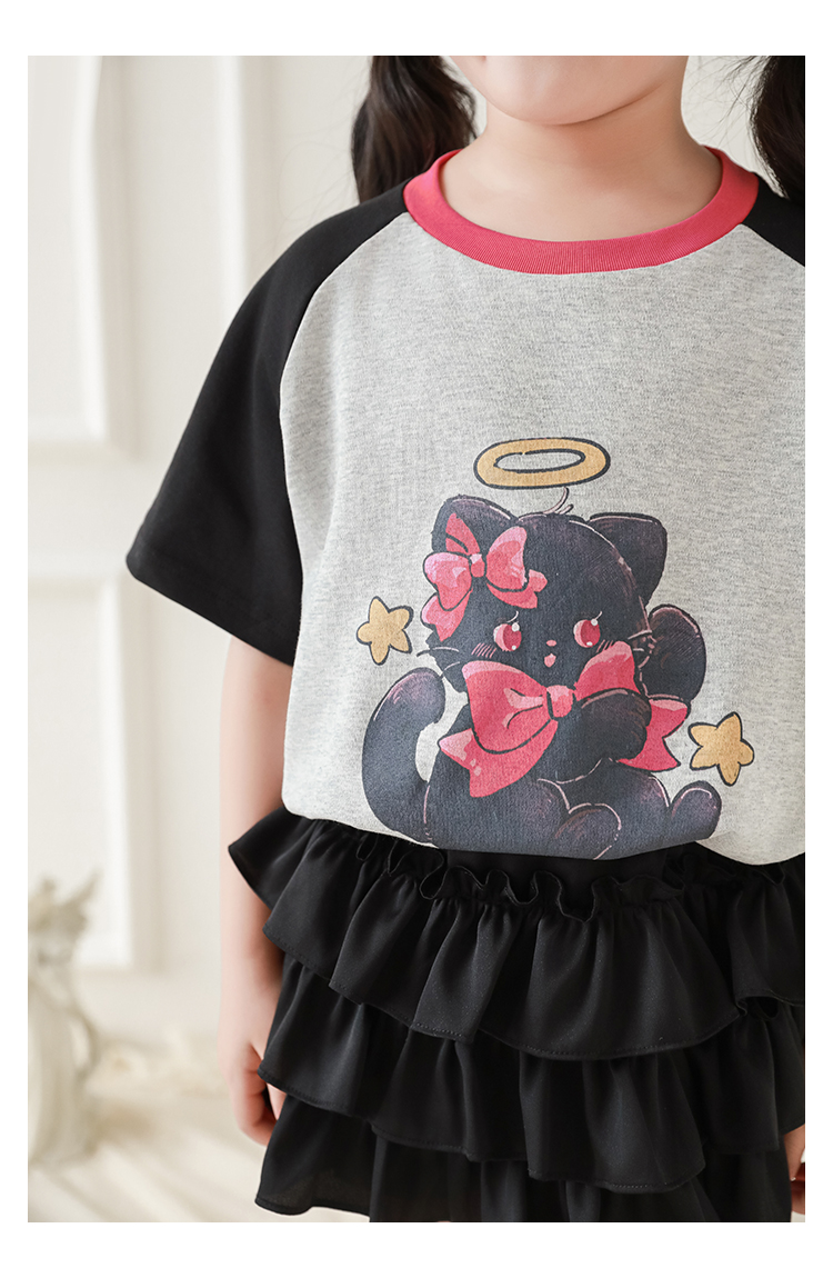 Wulibuyi 소녀 만화 프린트 라글란 슬리브 티셔츠 2025 여름 경량 대비 색상 골지 반팔 탑 트렌디