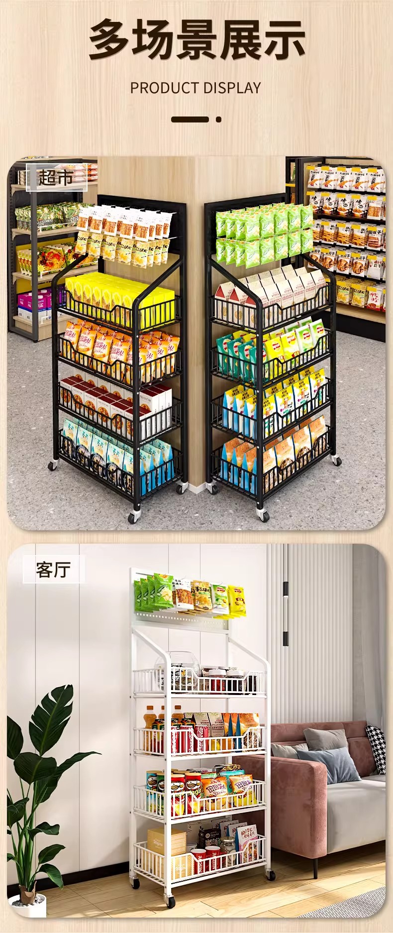 스낵 다층 스토리지 랙 슈퍼마켓 선반 편의점 모바일 랙 Oblique 바구니 가정용 장난감 스토리지 랙스토어 가기