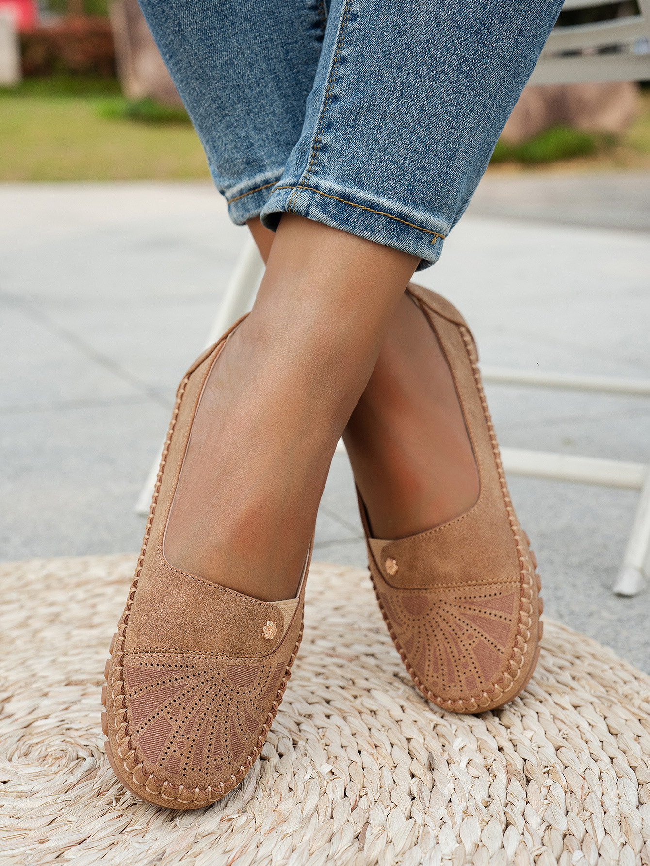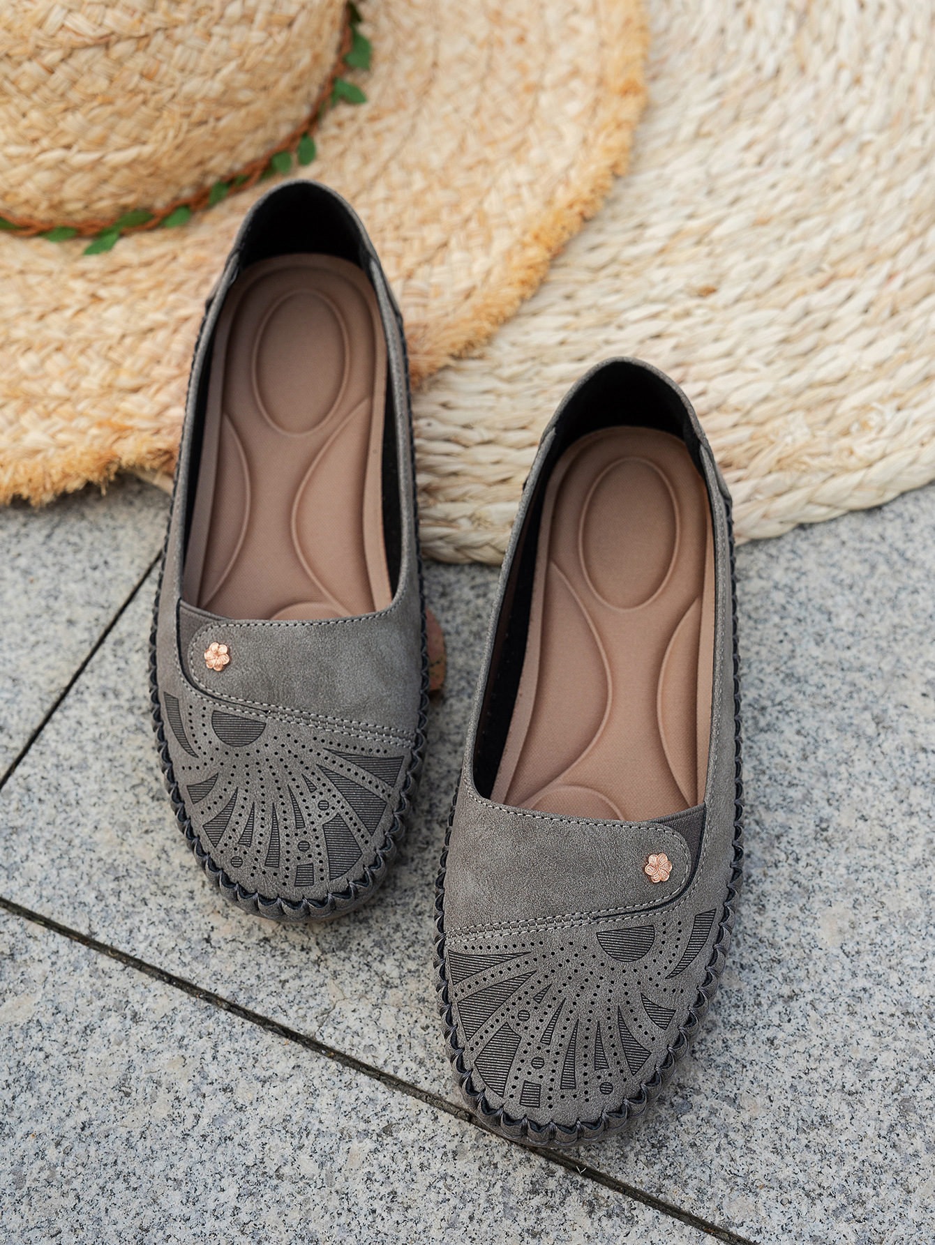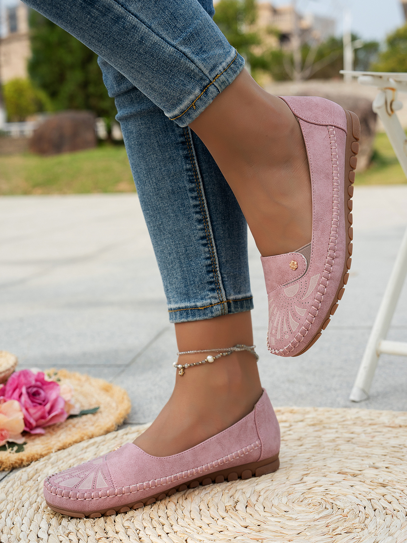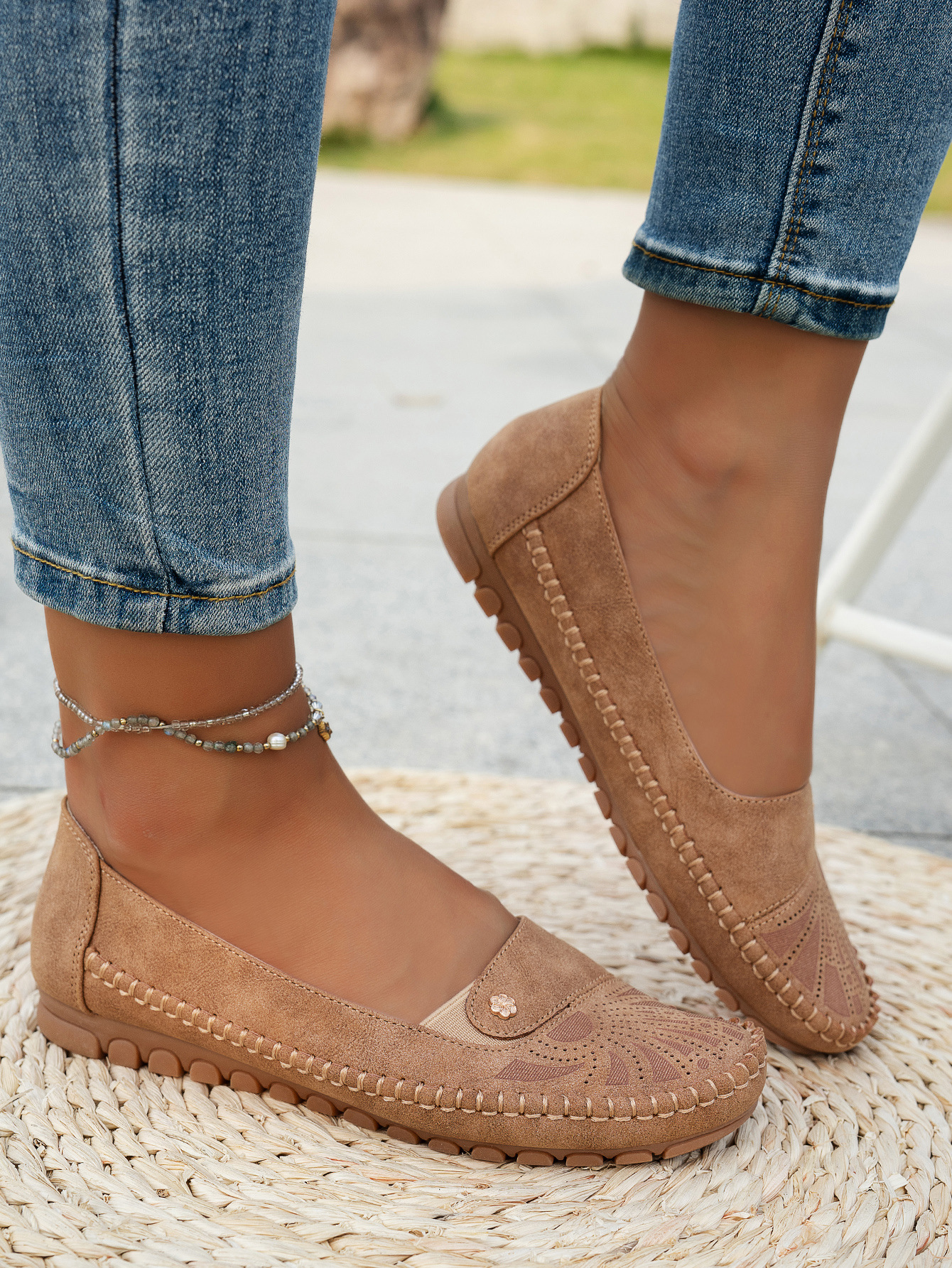 대형 사이즈 수출용 스티치 장식 금속 버클 여성 플랫 로퍼 신발, 해외 전자상거래 공급, 레트로하고 편안하며 다용도스토어 가기