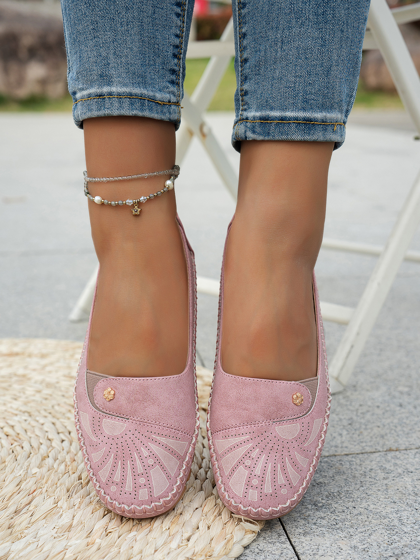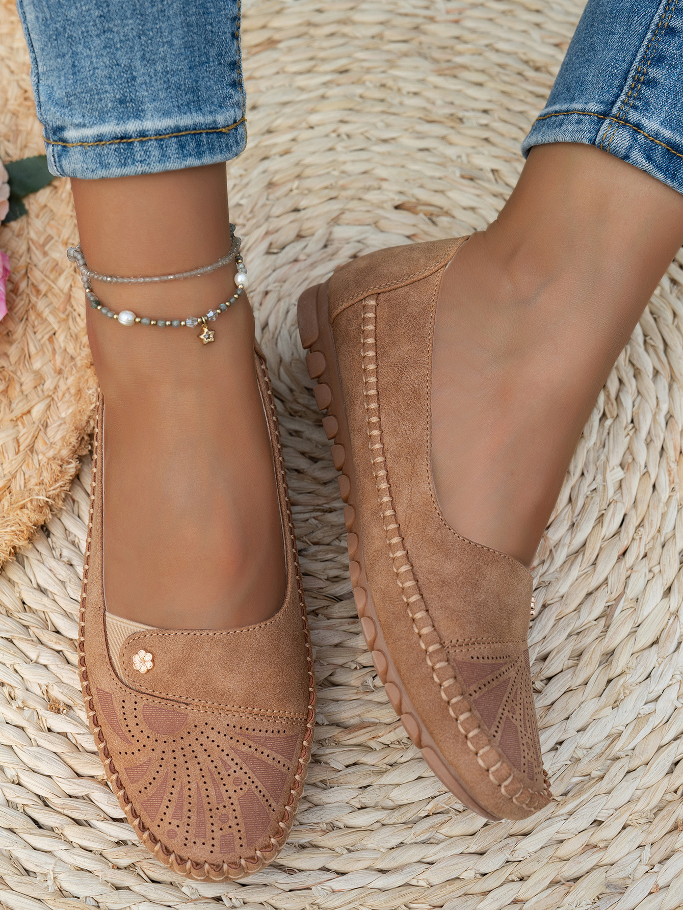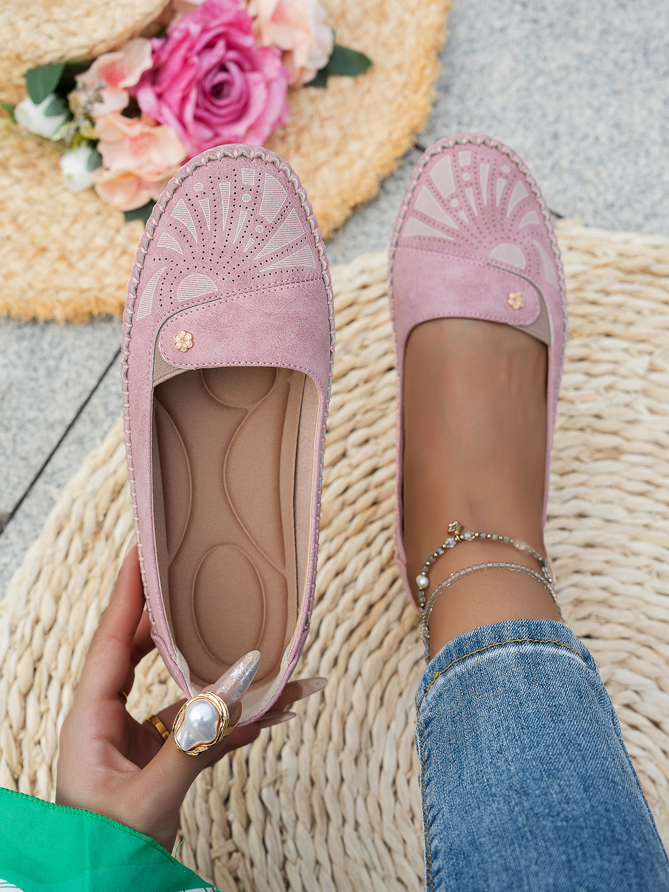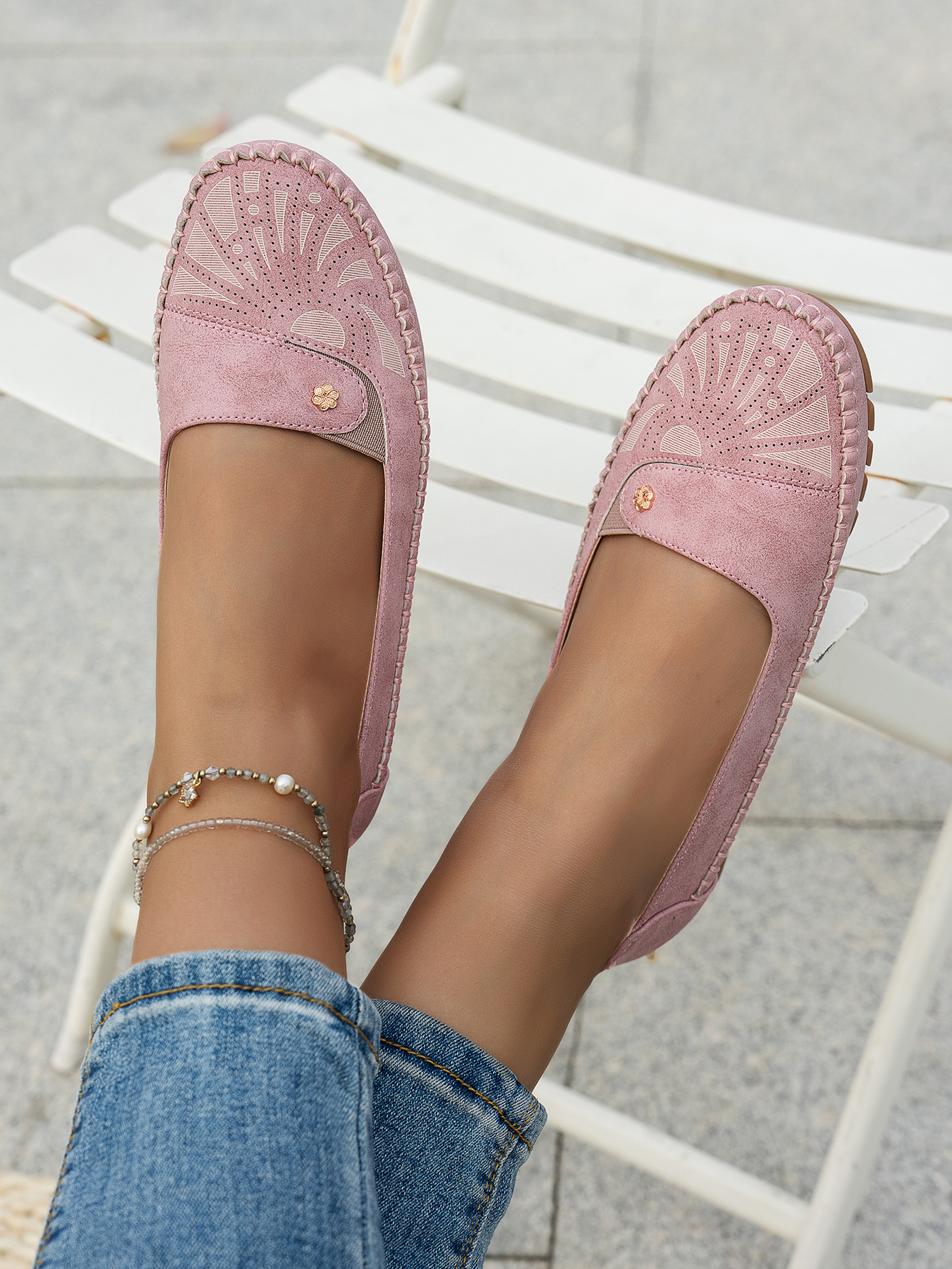 대형 사이즈 수출용 스티치 장식 금속 버클 여성 플랫 로퍼 신발, 해외 전자상거래 공급, 레트로하고 편안하며 다용도스토어 가기