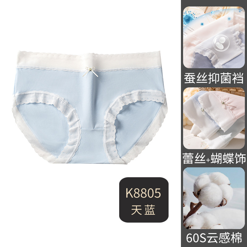 속옷 코튼 여성의 새로운 항균 실크 레이스 중간 허리 통기성 트라이앵글 반바지 머리 여성 속옷 원활한 속옷스토어 가기