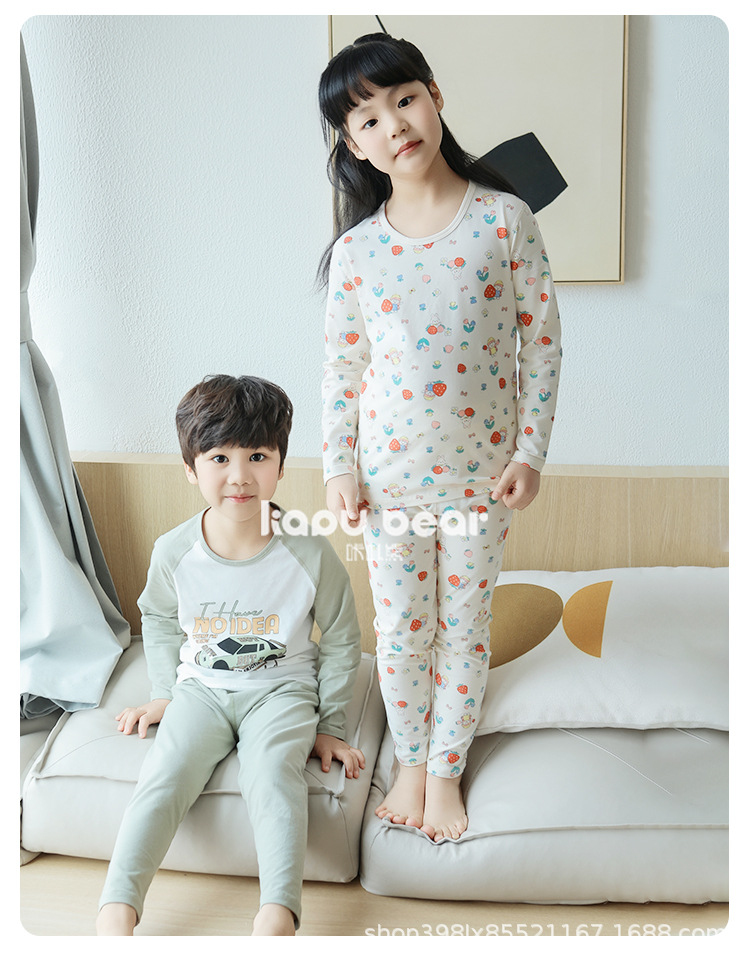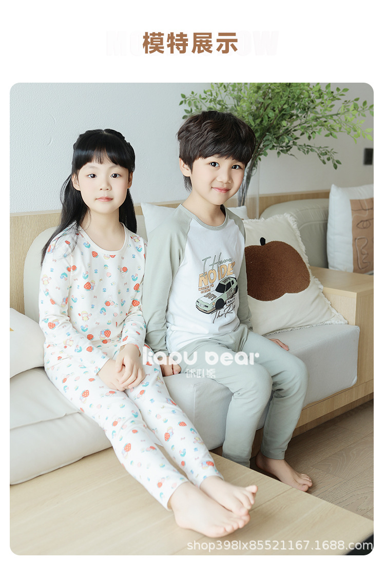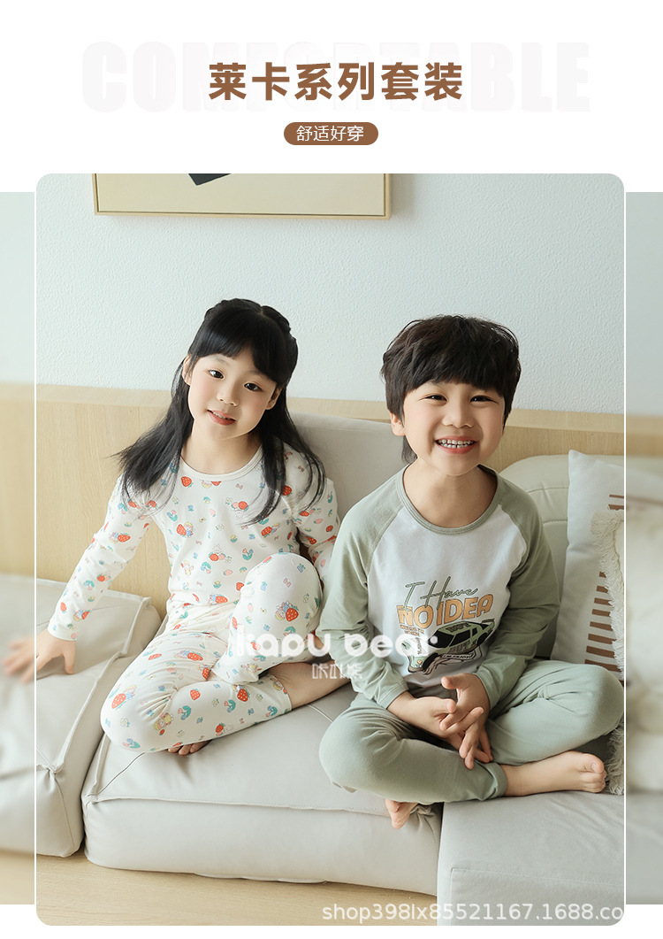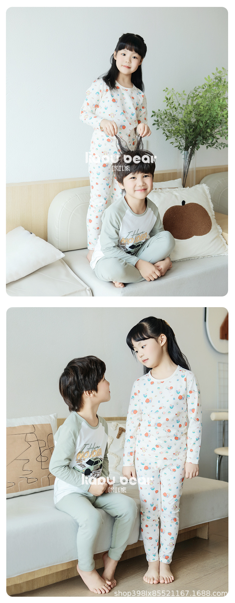 봄과 가을 소년과 소녀 뼈없는 가을 옷 세트 속옷 세트 2025 라이크라 홈웨어 아동복 Kapa Bear스토어 가기