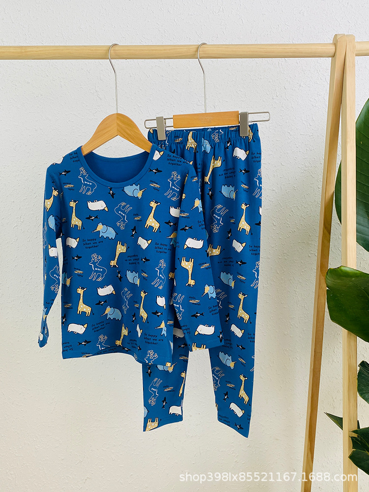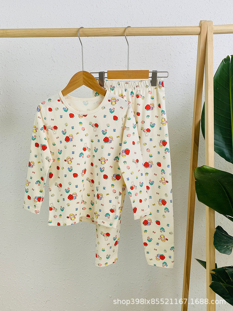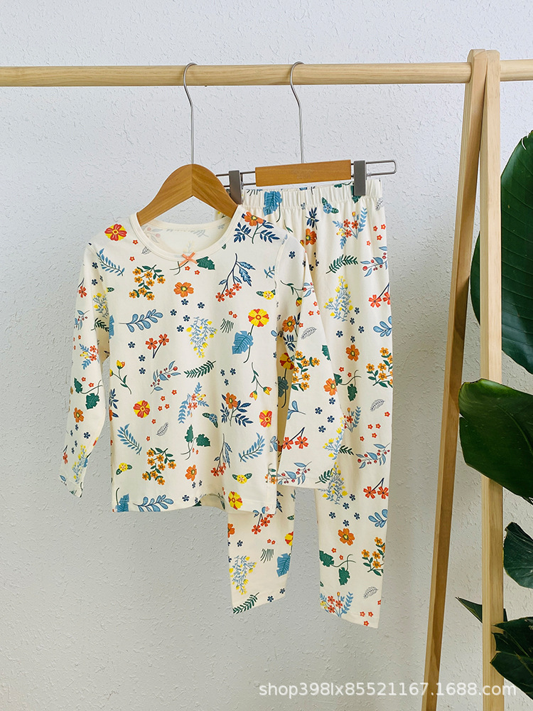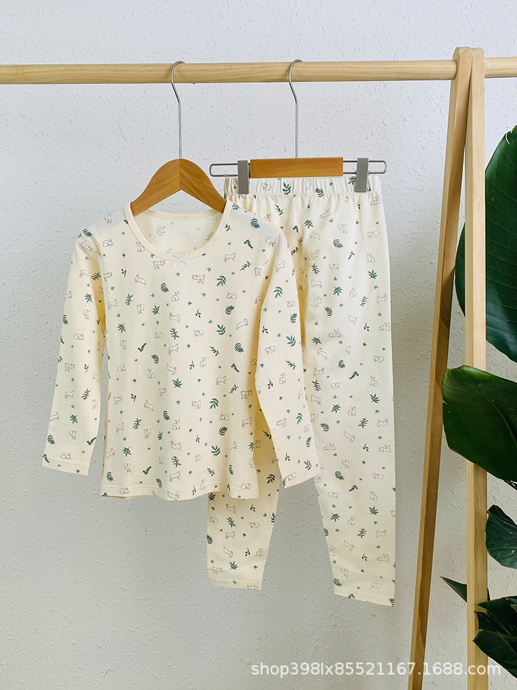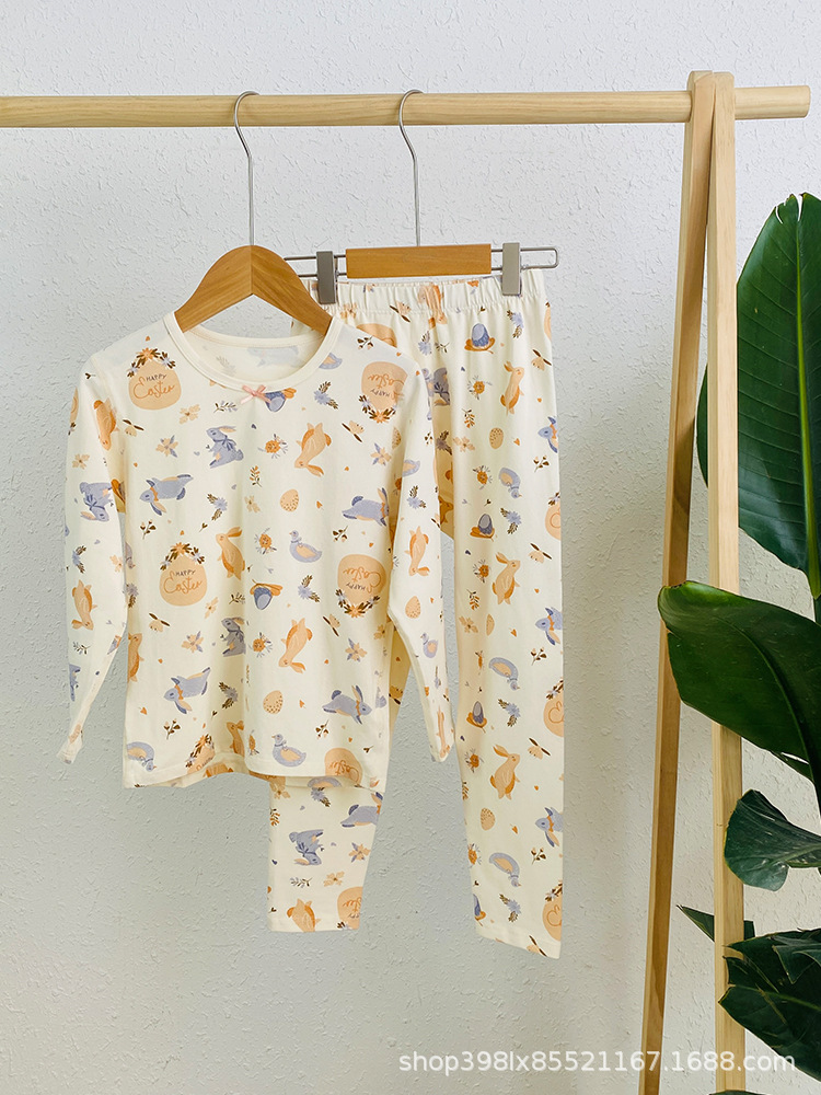 봄과 가을 소년과 소녀 뼈없는 가을 옷 세트 속옷 세트 2025 라이크라 홈웨어 아동복 Kapa Bear스토어 가기