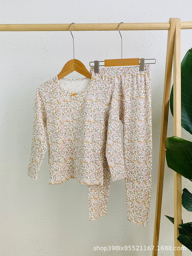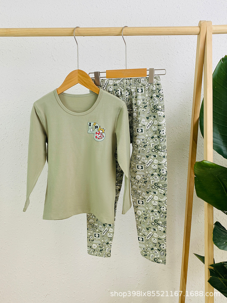 봄과 가을 소년과 소녀 뼈없는 가을 옷 세트 속옷 세트 2025 라이크라 홈웨어 아동복 Kapa Bear