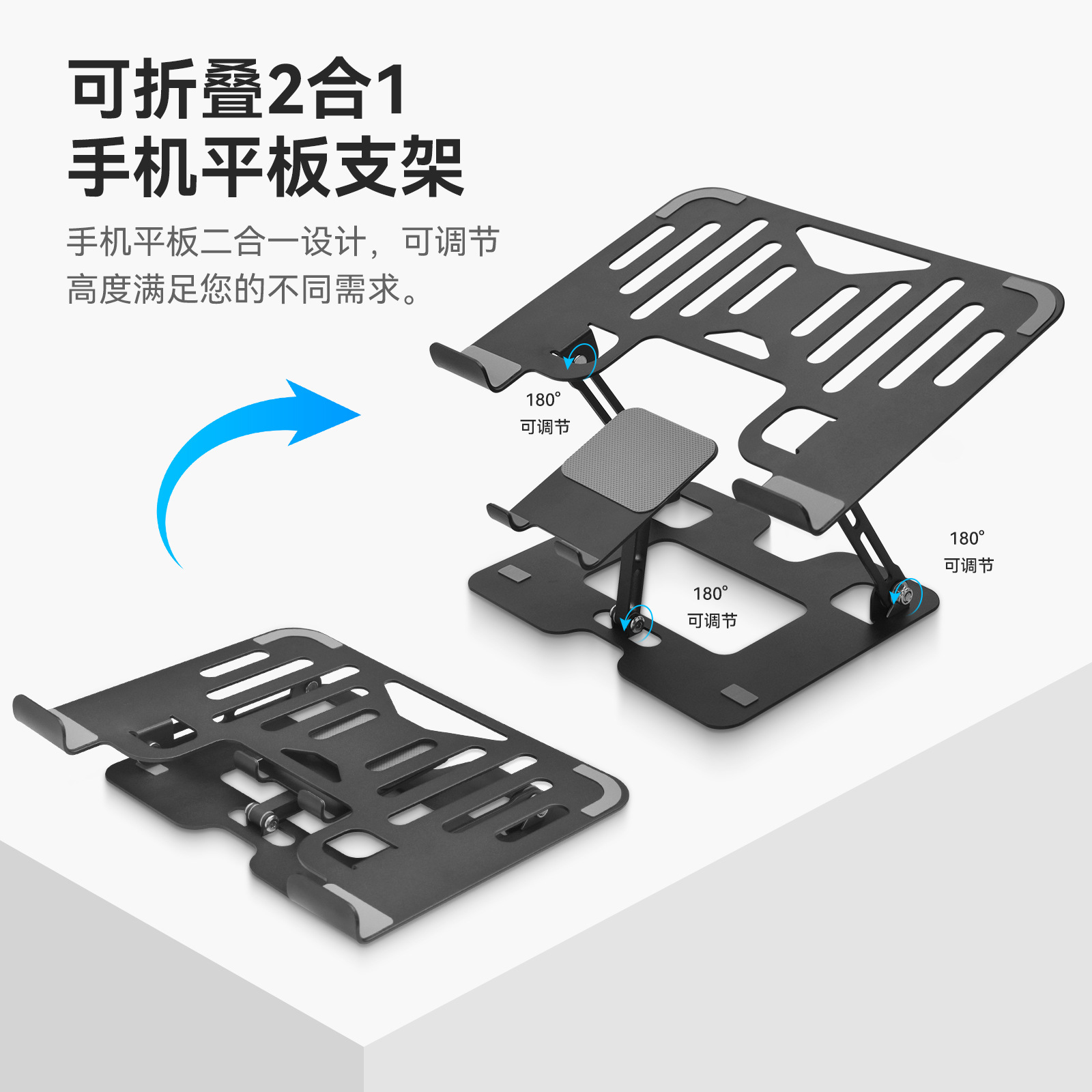 • 블랙 [동일 화면 인터랙티브 헤드업 오피스] 휴대폰 및 노트북 투인원 스탠드