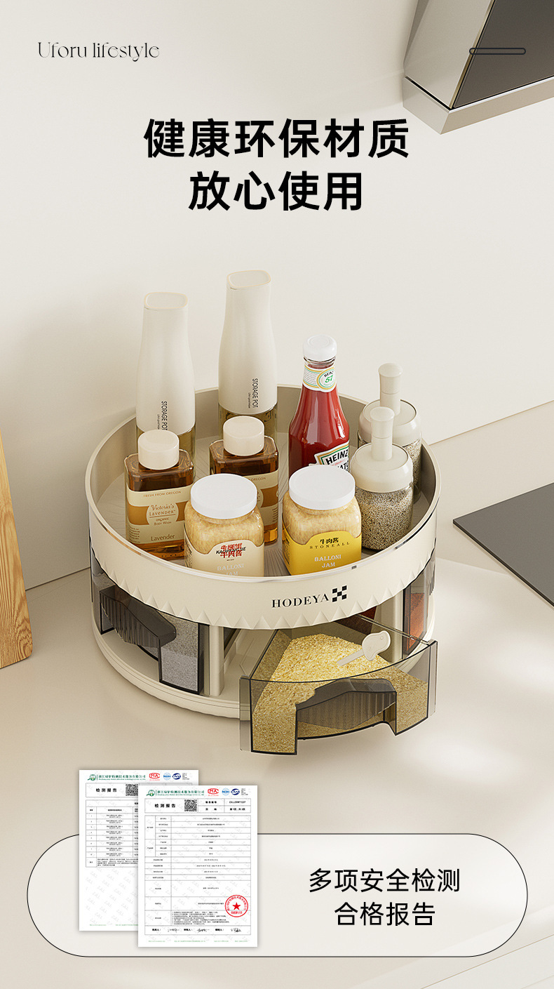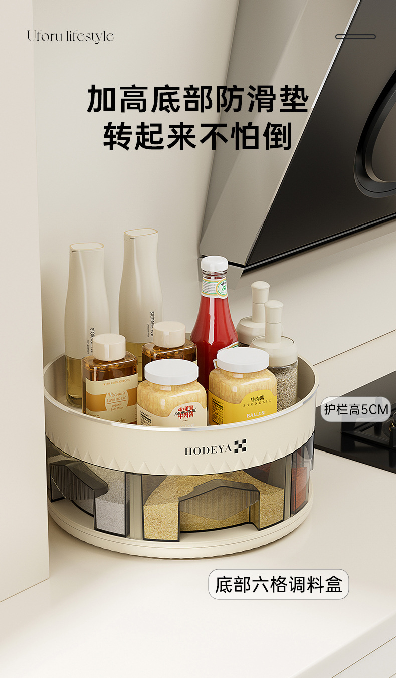 다기능 가정용 주방 로타리 조미료 상자 스토리지 랙 새로운 카운터 탑 더블 레이어 스토리지 박스 조미료 스토리지 랙
