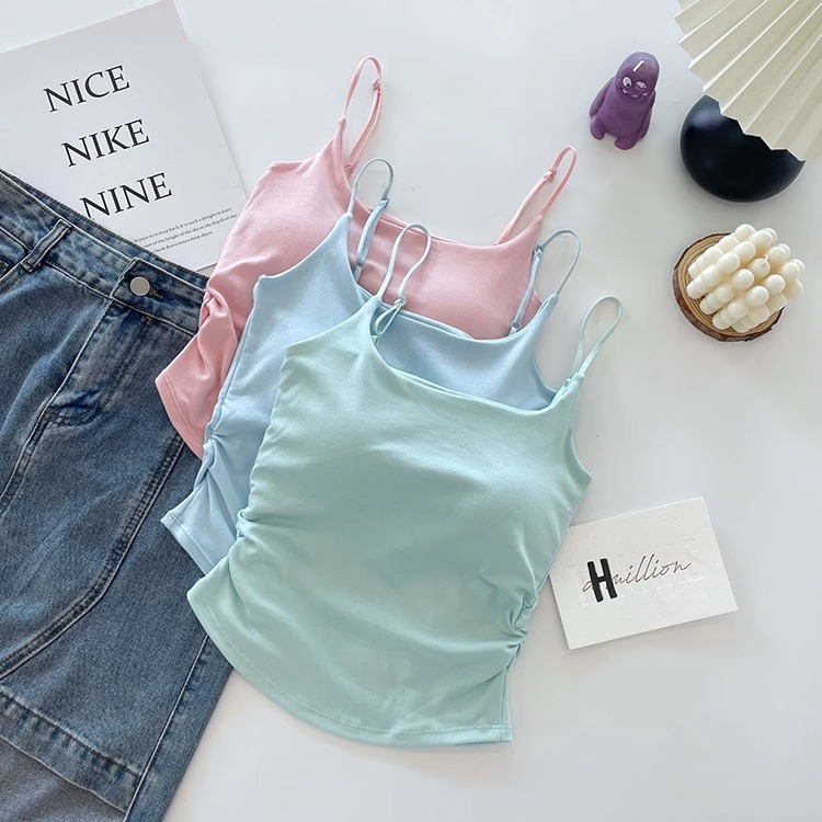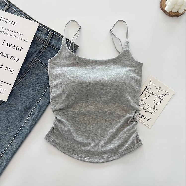 순수한 달콤하고 매운 디자인 흉부 패드 슬림 핏 아름다운 백베이스 탑으로 장식 된 카미솔 여성용 외투스토어 가기