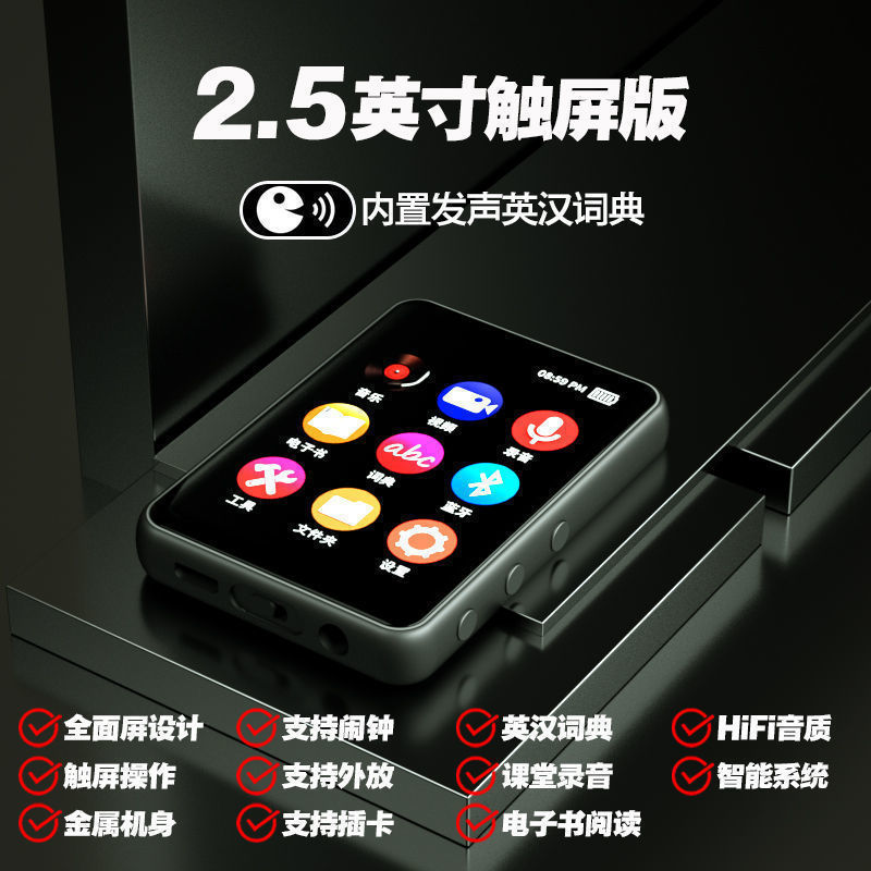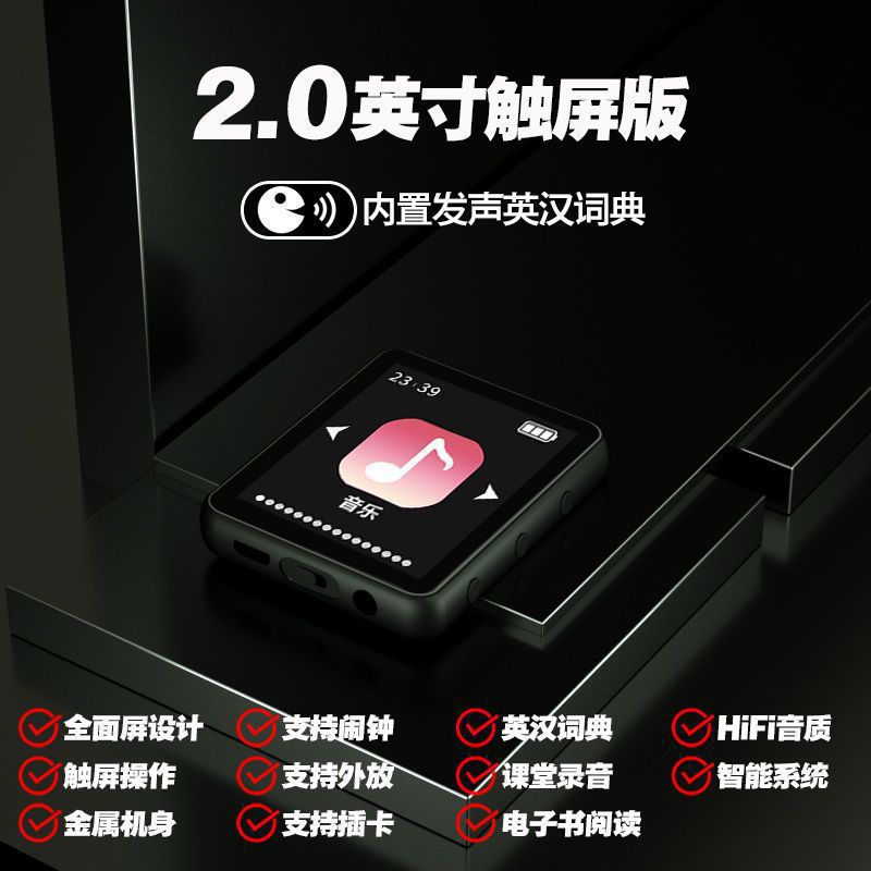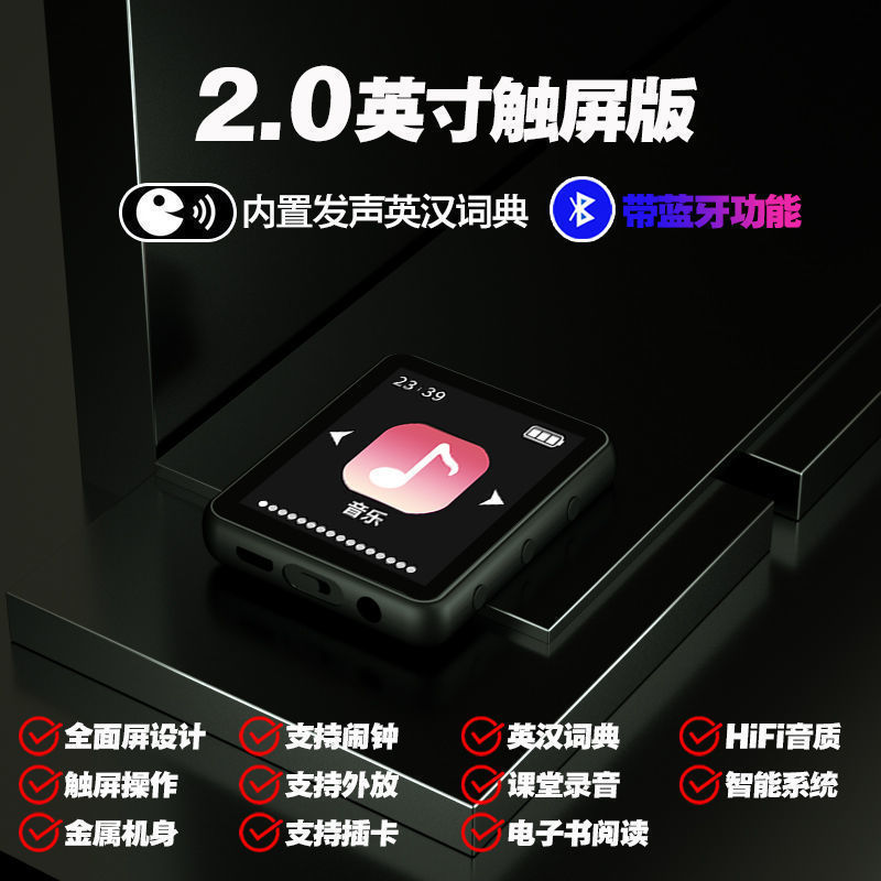 터치 스크린 mp4 블루투스 학생 워크맨 mp3 휴대용 음악 플레이어 미니 귀여운 화면 영어 사전