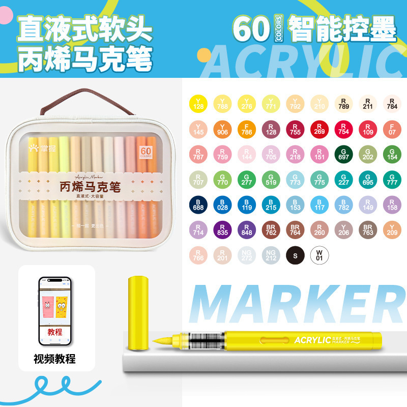 스트레이트 액체 소프트 헤드 아크릴 마커 펜 불투명 한 컬러 스택 가능한 컬러 학생 아트 페인팅 낙서 84 컬러 60 컬러 마스터