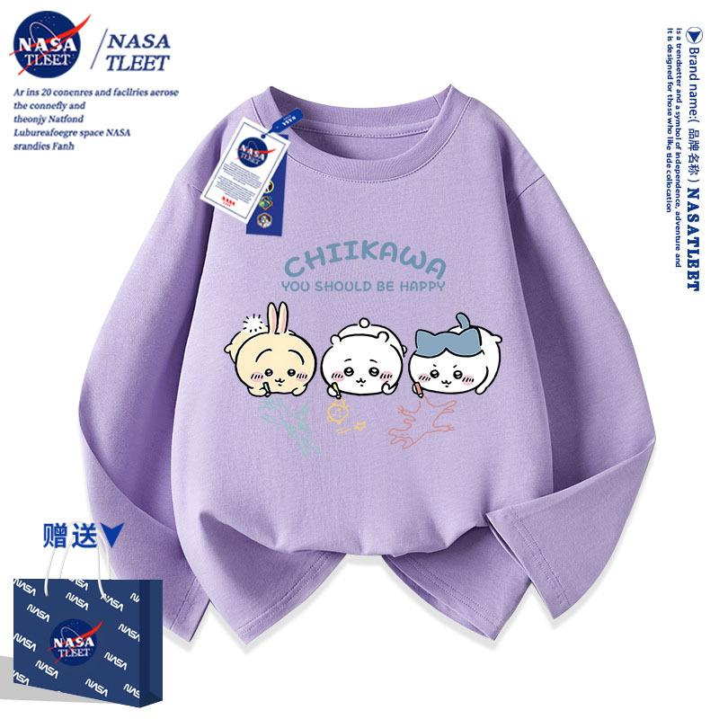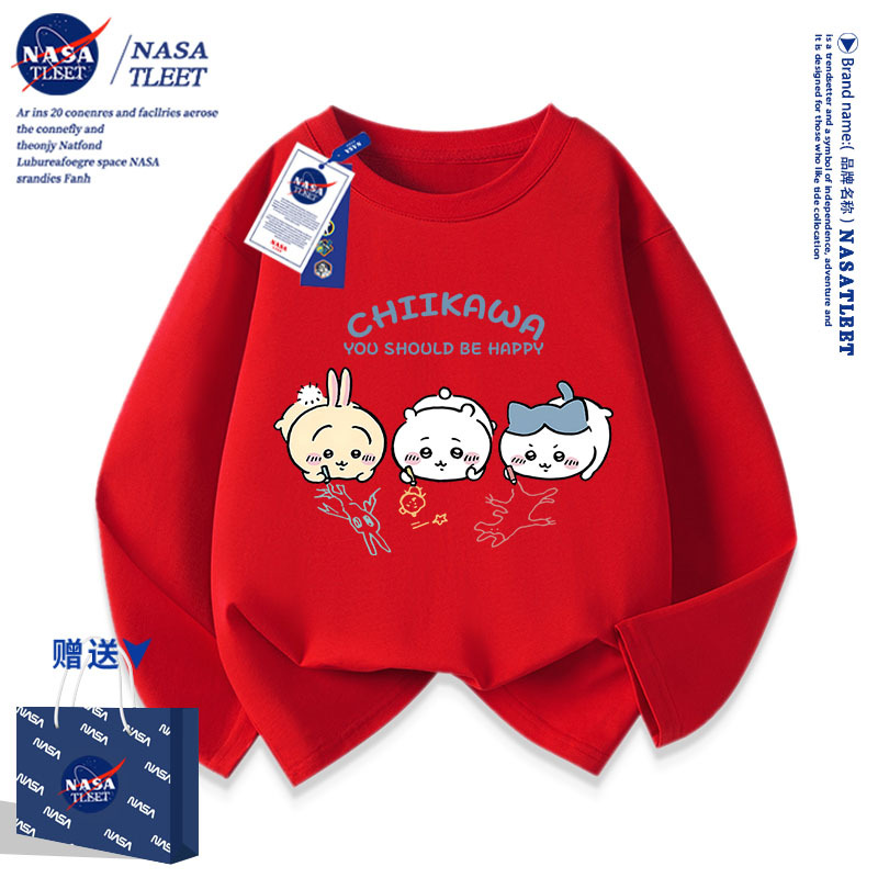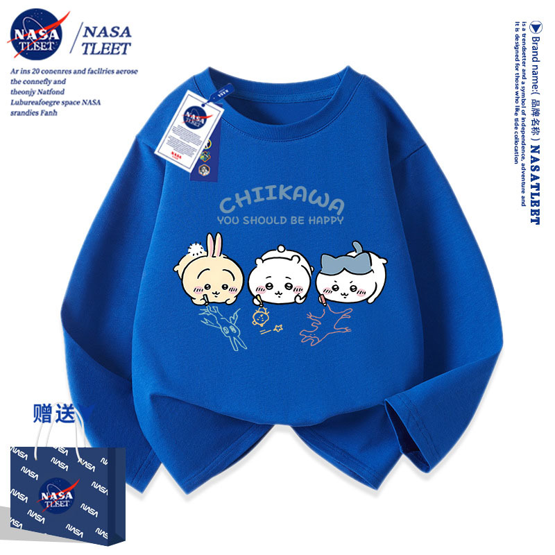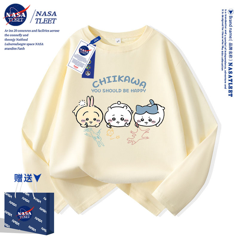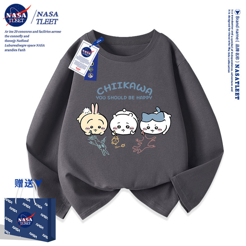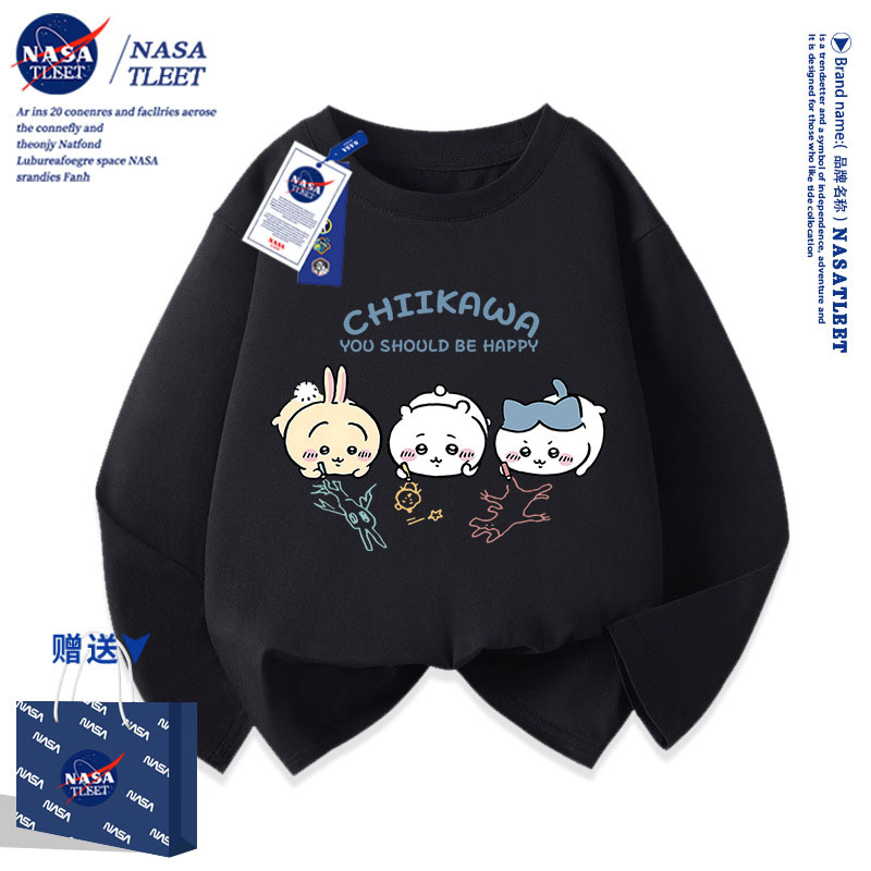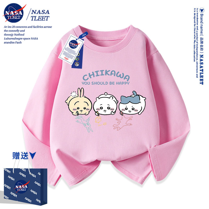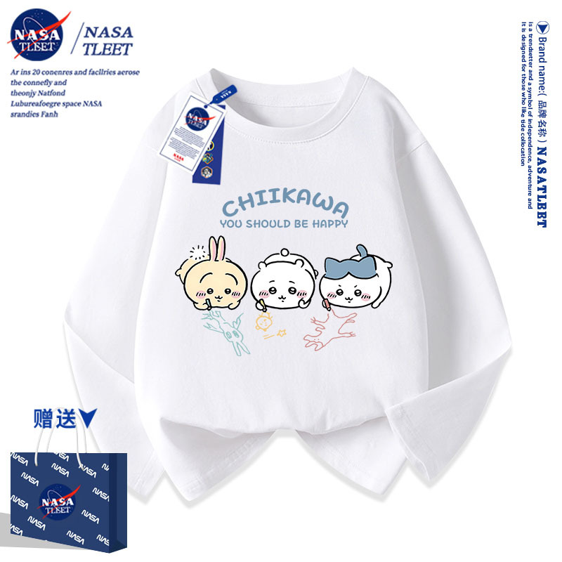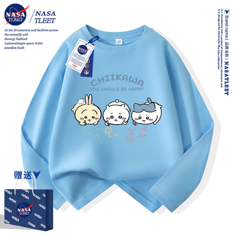NASA 공동 브랜드 chiikawa Usachi Chiikawa Xiaoba 남녀 아동용 긴팔 티셔츠 베이스 레이어스토어 가기