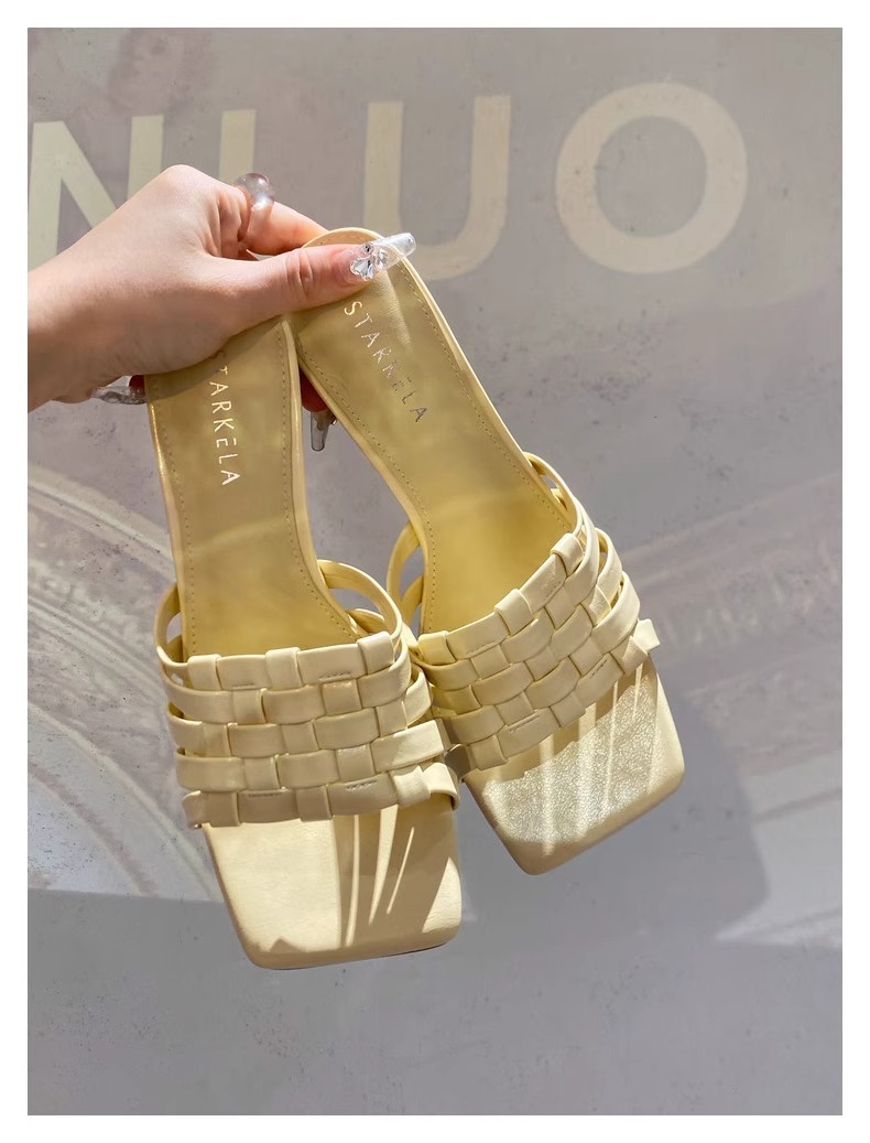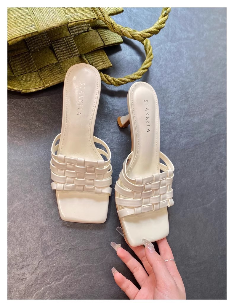 Starkela 여성용 하이힐 샌들 및 슬리퍼 유행 외주 여름 새로운 스타일 레트로 스퀘어 헤드 2025 년 동안 올 매치 편안한 슬라이드스토어 가기