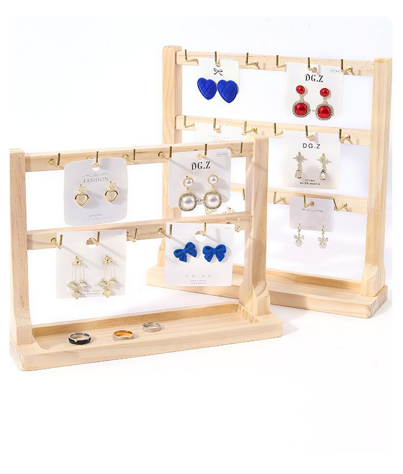 단단한 나무 보석 디스플레이 스탠드 후크 작은 보석 걸이 걸이 귀걸이 디스플레이 스탠드 팔찌 저장 랙 탱신스토어 가기