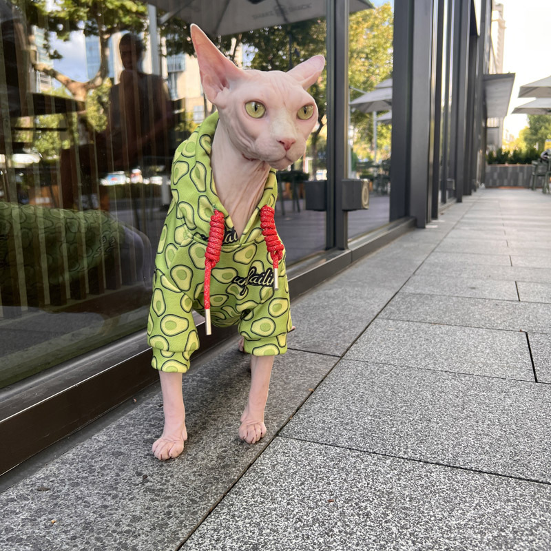 털이 없는 고양이 데본 고양이 옷 가을 겨울 아보카도 스웨트 셔츠