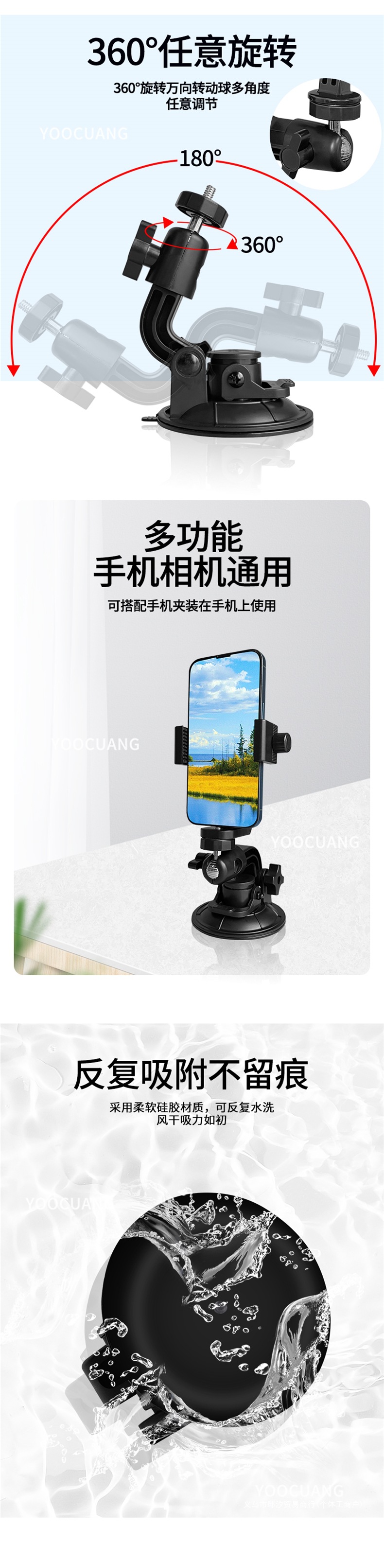 자동차 흡입 컵 홀더 스포츠 카메라 휴대 전화 마이크로 단일 뷰 유리 자동차 카메라 고정 석영 Insta360스토어 가기