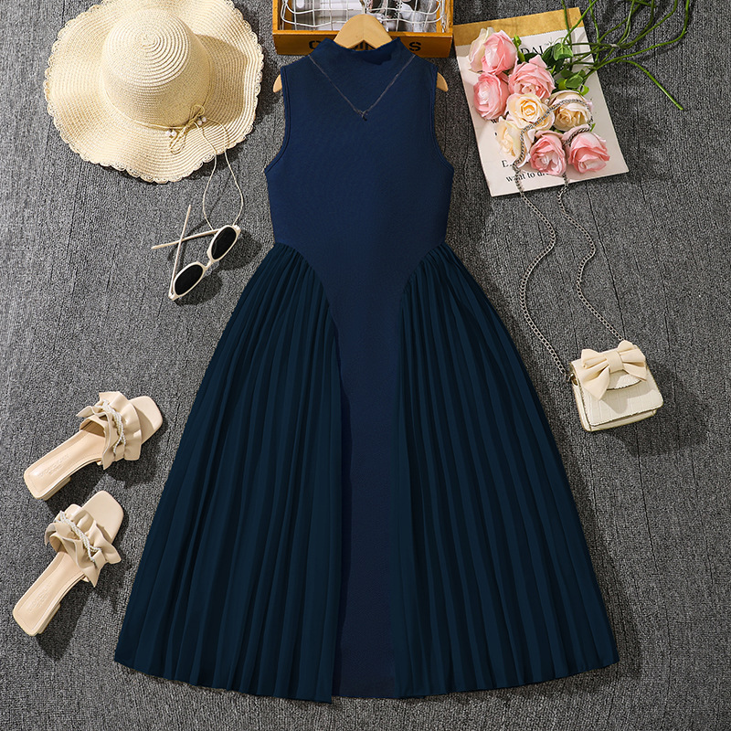 여아 원피스 대외 무역 국경 아동복 여름 새 스타일 칼라 우아한 주름 장식 민소매 원피스 긴 원피스스토어 가기