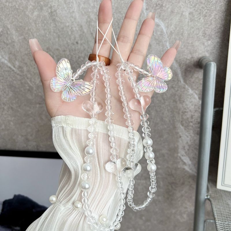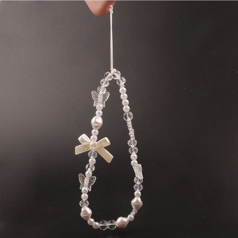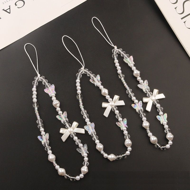 인 스타일 화이트 진주 나비 구슬 짧은 창조적 인 휴대 전화 끈 cd 카메라 체인 한국 스타일 맞춤형 휴대 전화 체인스토어 가기