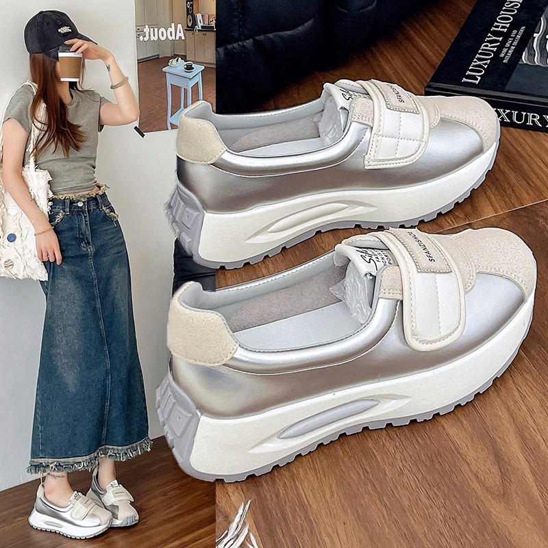 여성을위한 얕은 입 스포츠 신발 2025 여름 새로운 통기성 인터넷 연예인 다목적 두꺼운 밑창 여성을위한 흰색 아빠 신발스토어 가기