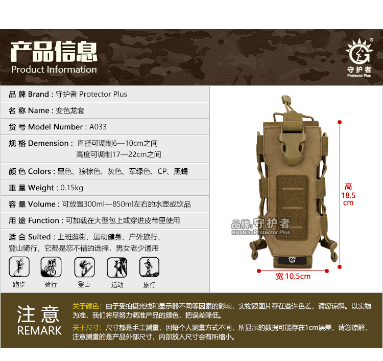 가디언 야외 주전자 보호 커버 전술 승마 주전자 가방 음료 보관 가방 등산 레저 배낭 액세서리스토어 가기