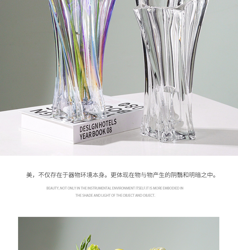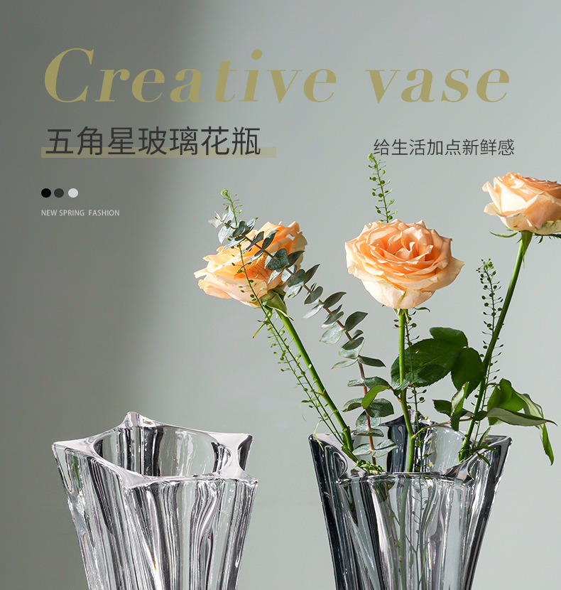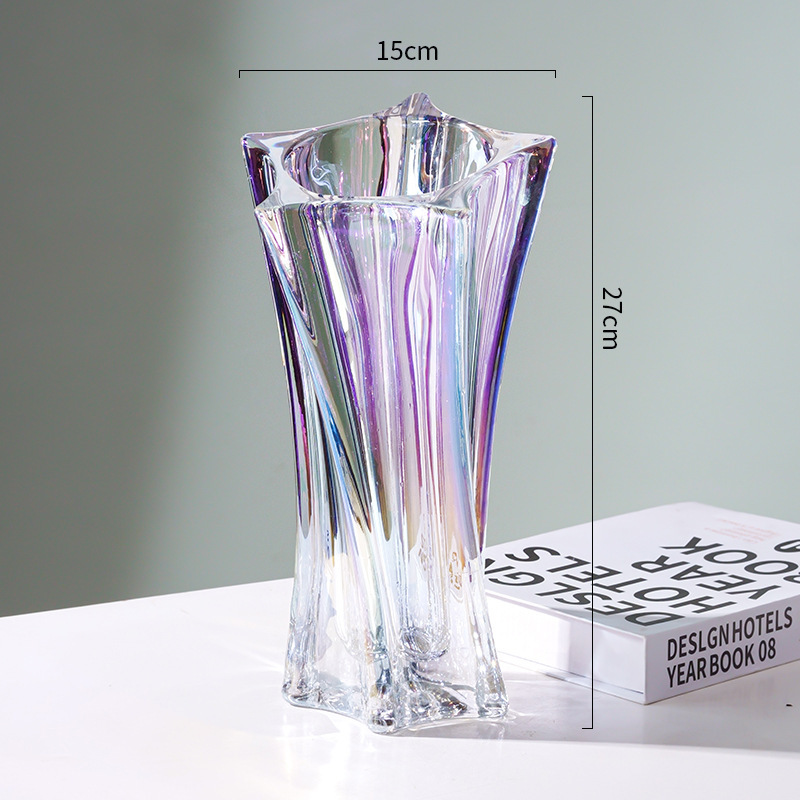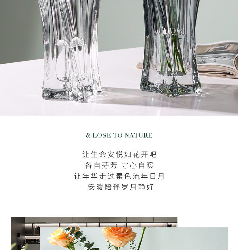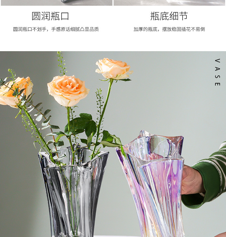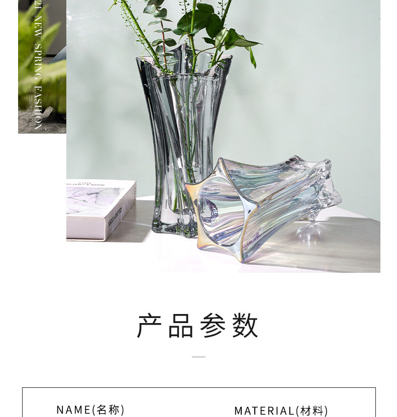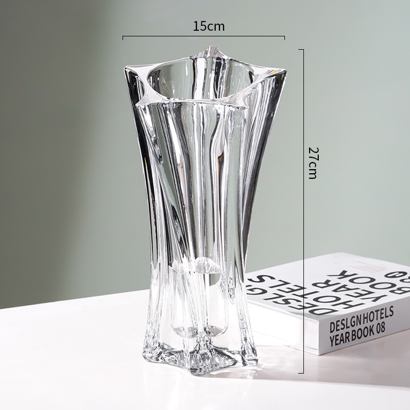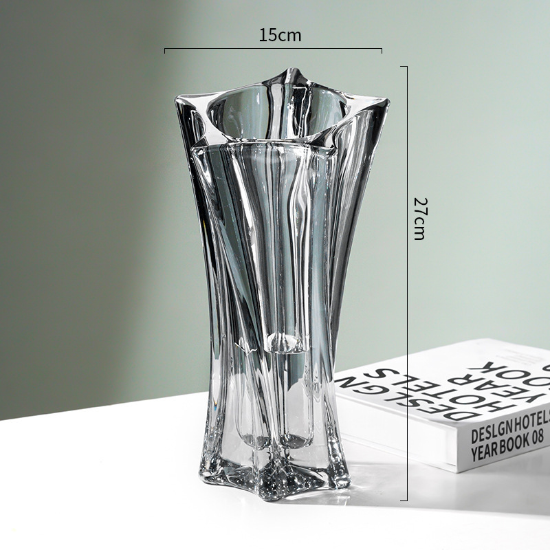 북유럽 고급 스타 유리 꽃병, 투명 꽃꽂이, 가벼운 럭셔리 인터넷 연예인 고급 거실 꽃 장식품