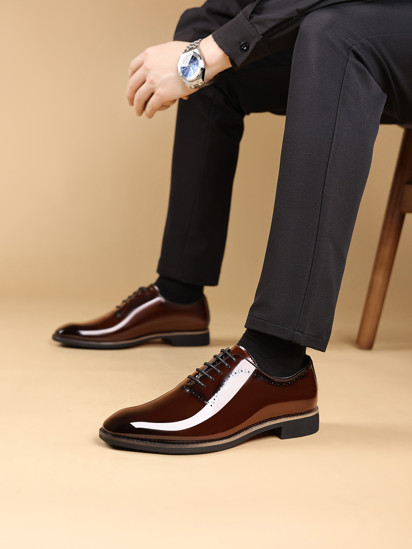 크로스보더 레이스업 7903 페이턴트 가죽 조각 남성 스퀘어 토 비즈니스 정장 가죽 신발 2025 광택 가죽 남성 신발