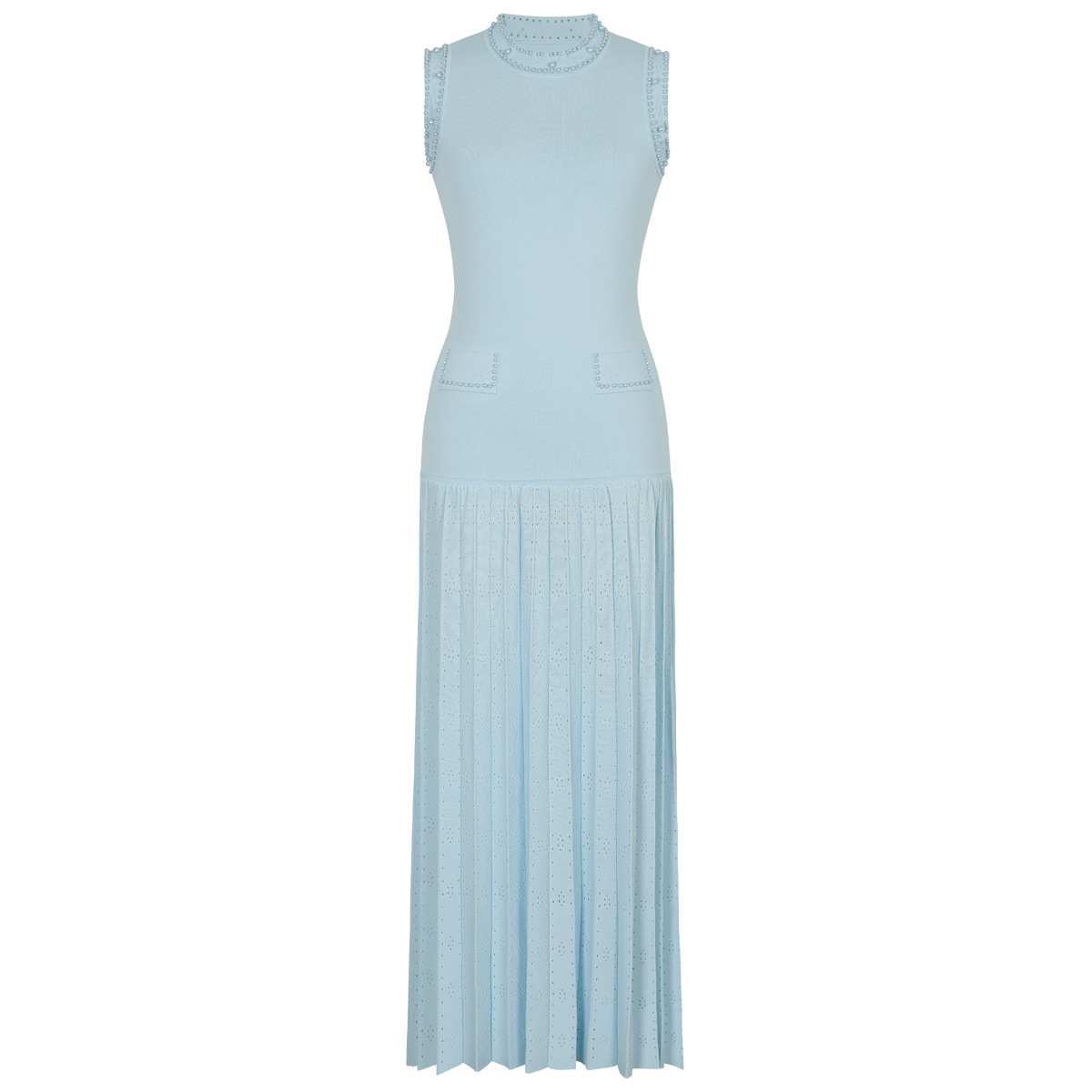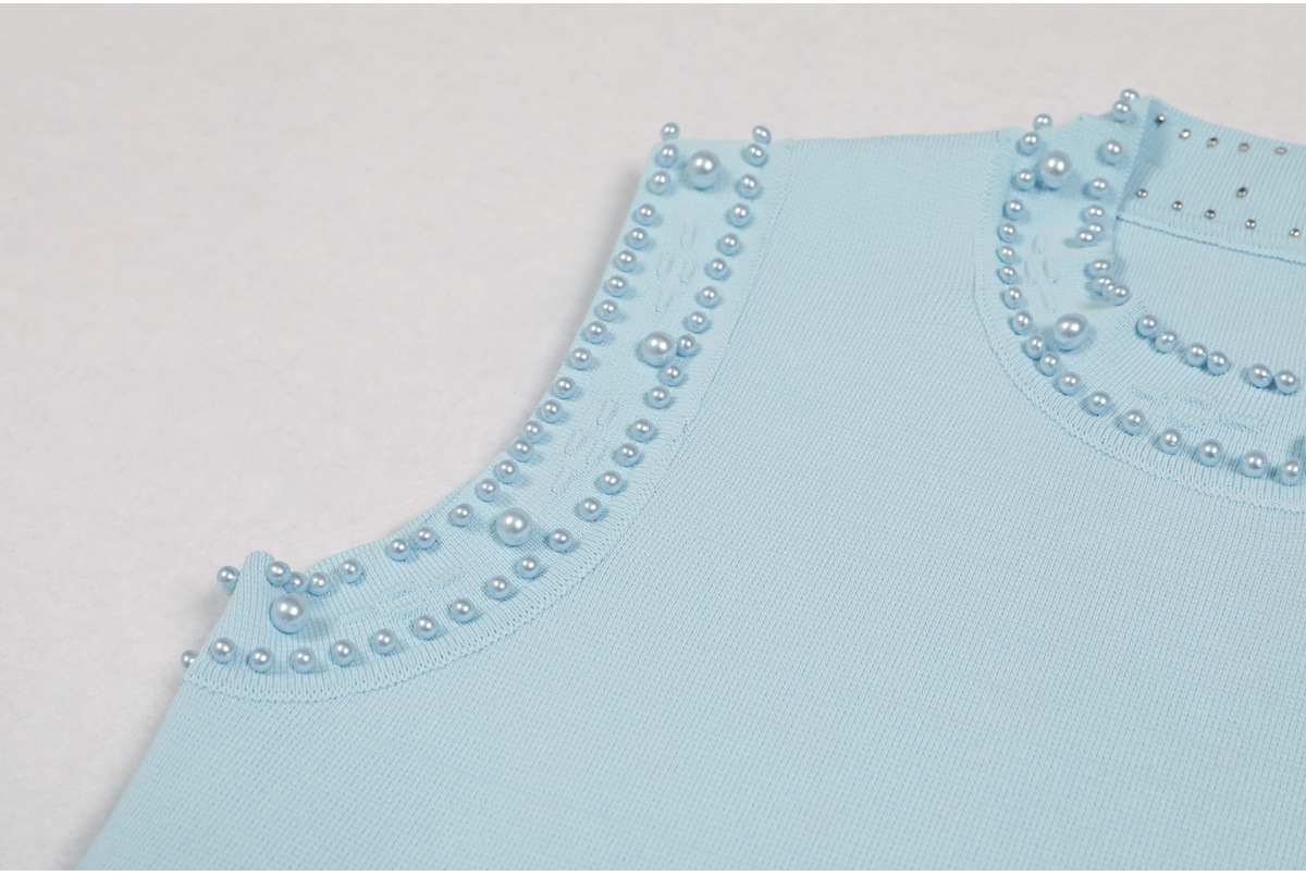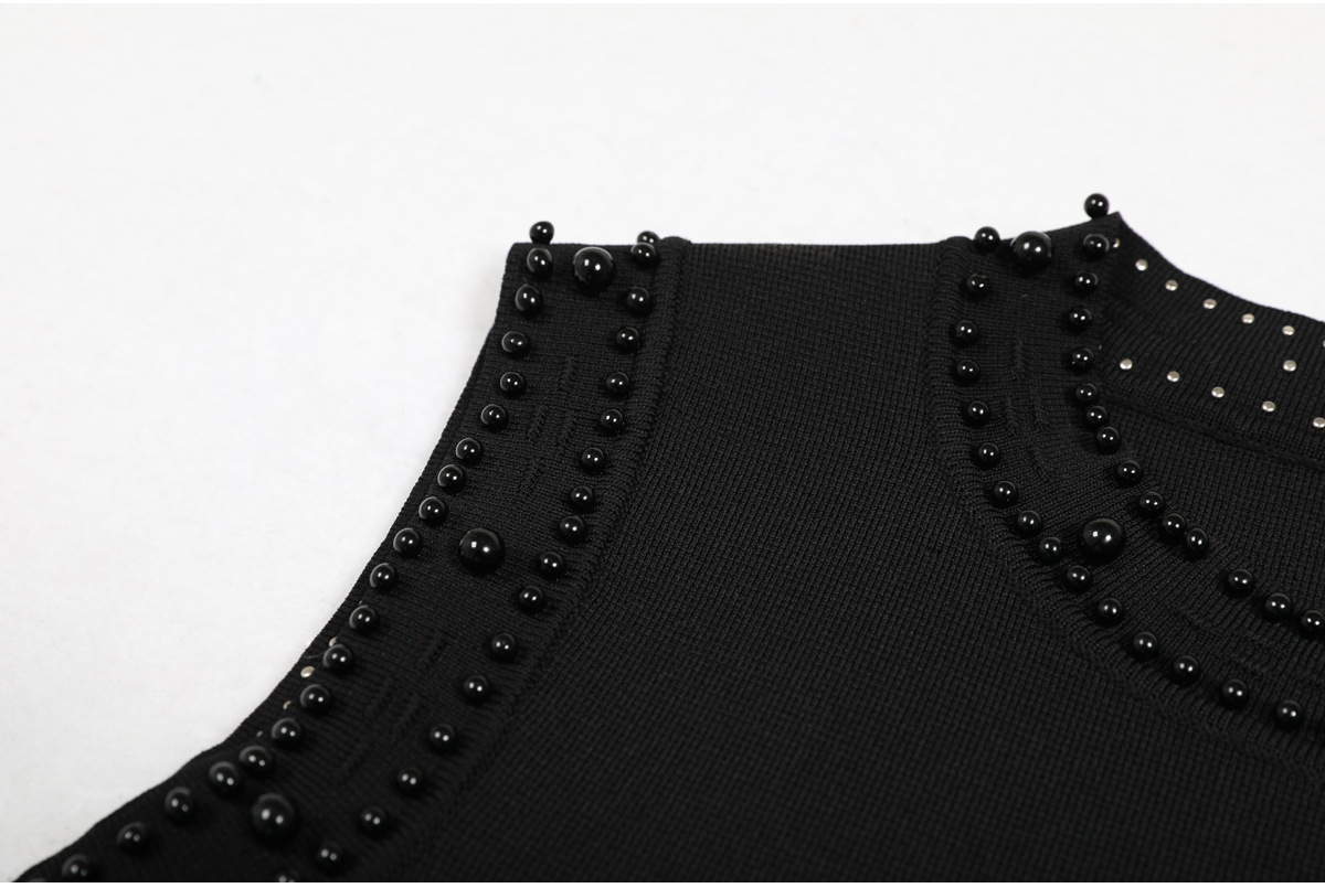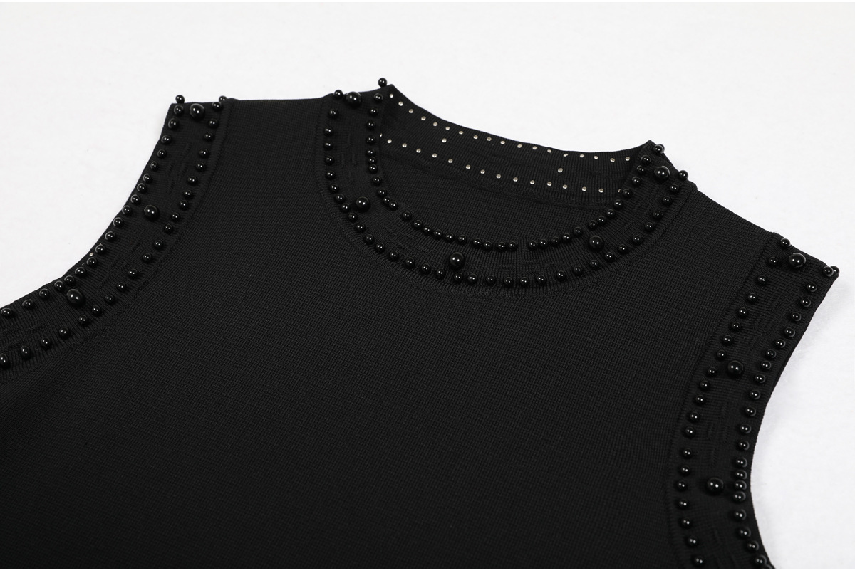 품질 재고 2025 봄과 가을 새로운 도착 올 매치 레이디 비드 니트 탑 민소매 긴 원피스