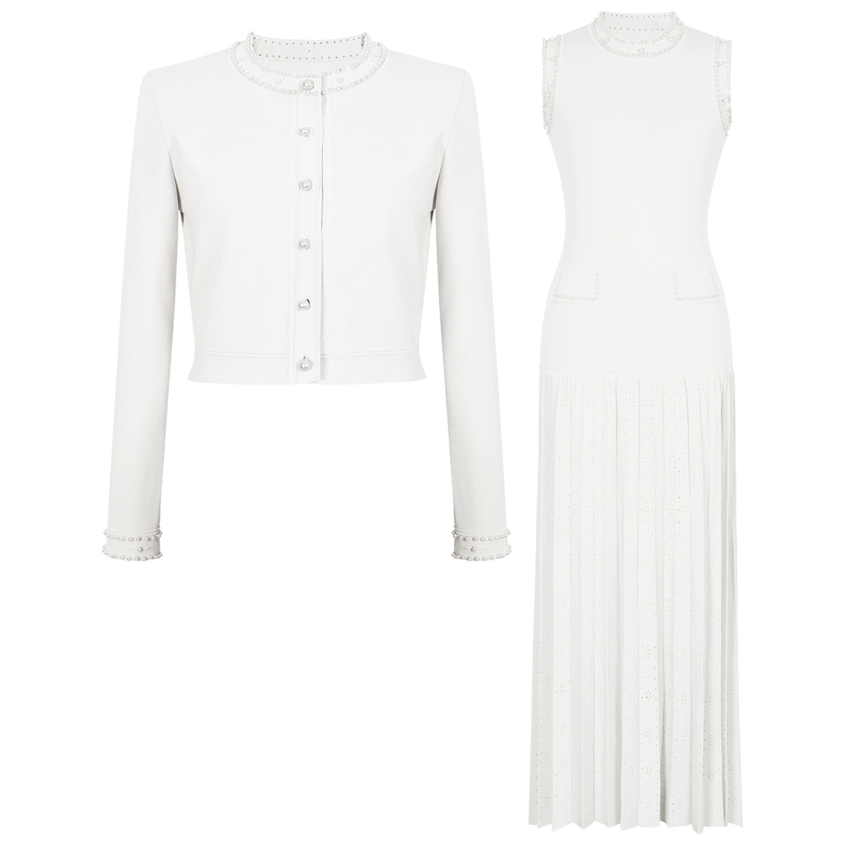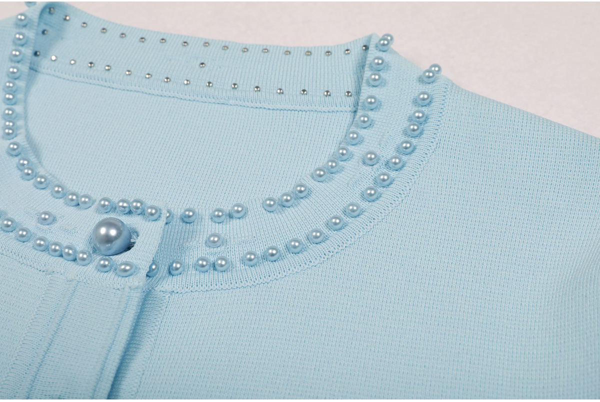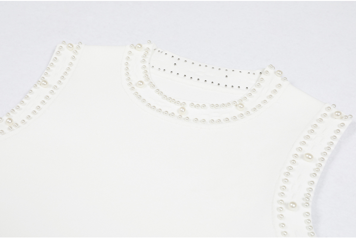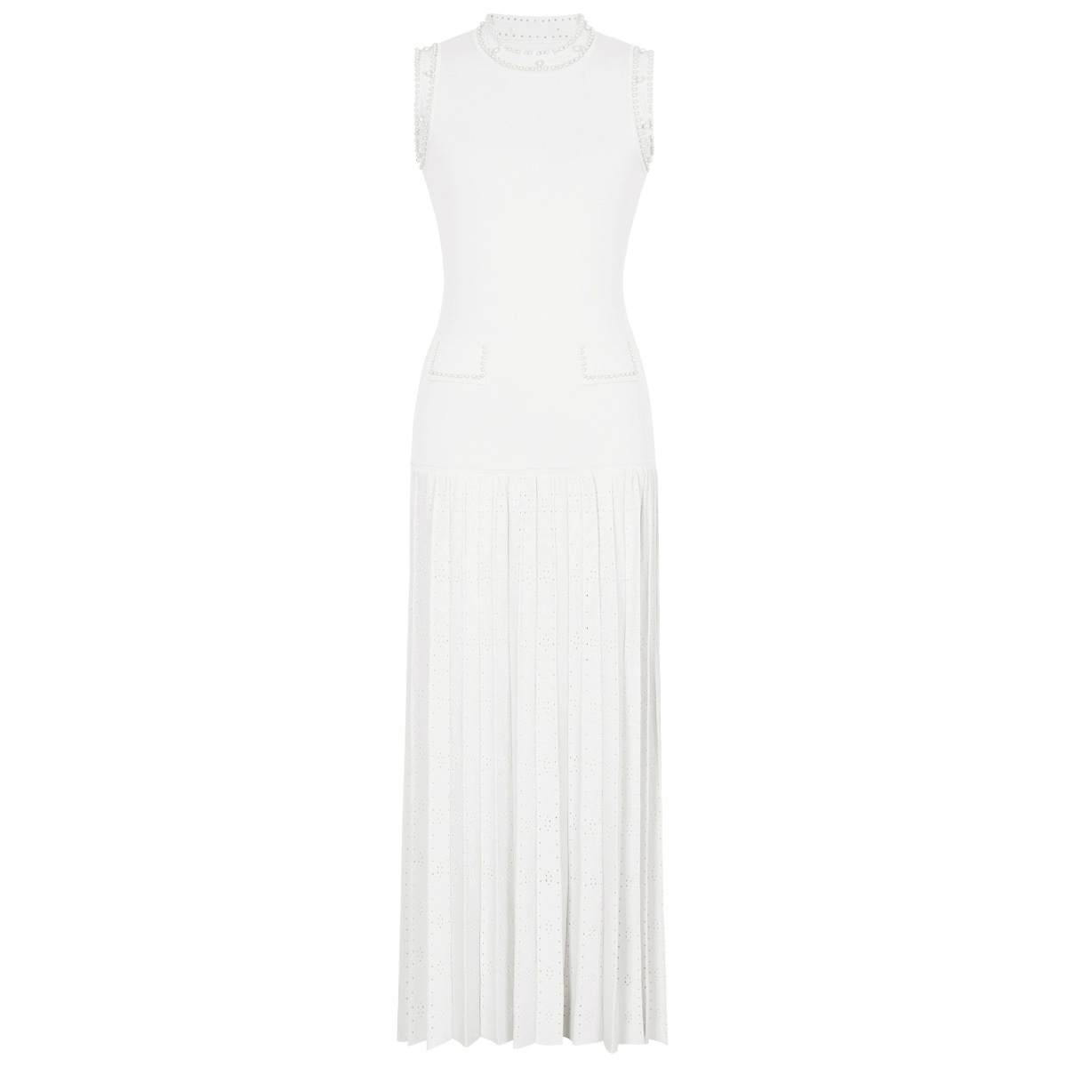 품질 재고 2025 봄과 가을 새로운 도착 올 매치 레이디 비드 니트 탑 민소매 긴 원피스