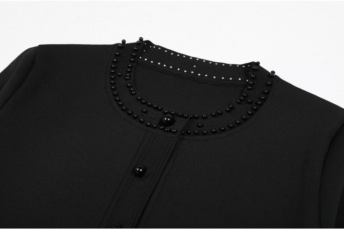 품질 재고 2025 봄과 가을 새로운 도착 올 매치 레이디 비드 니트 탑 민소매 긴 원피스스토어 가기