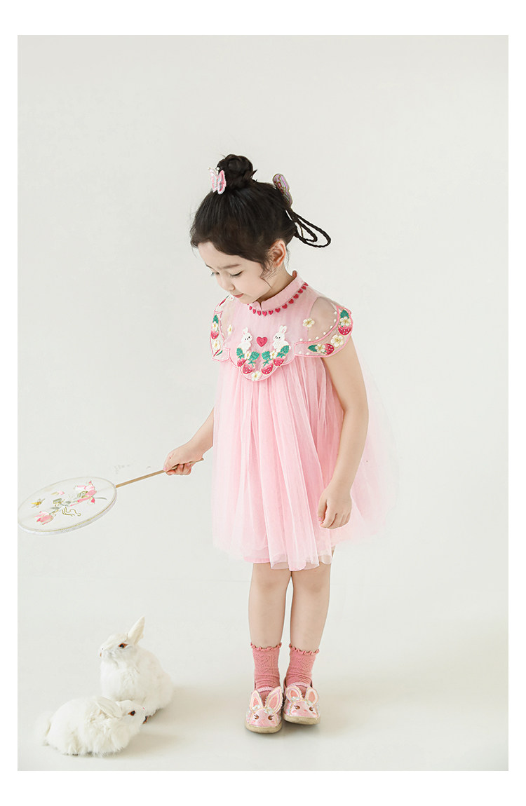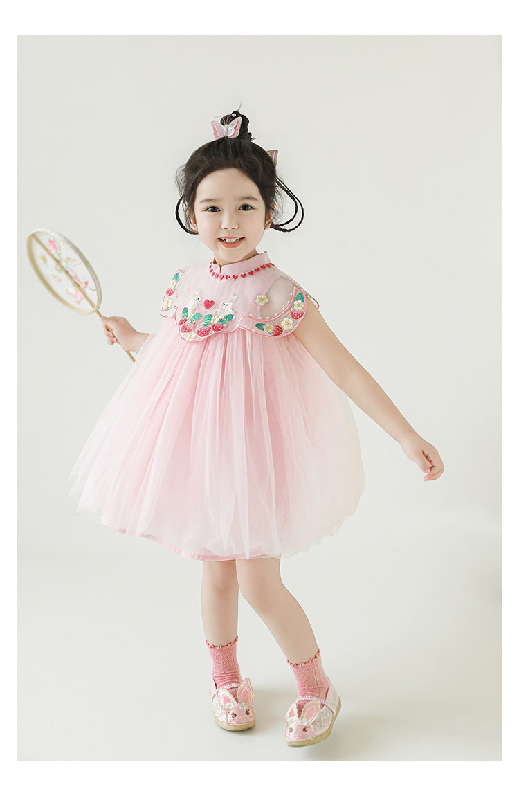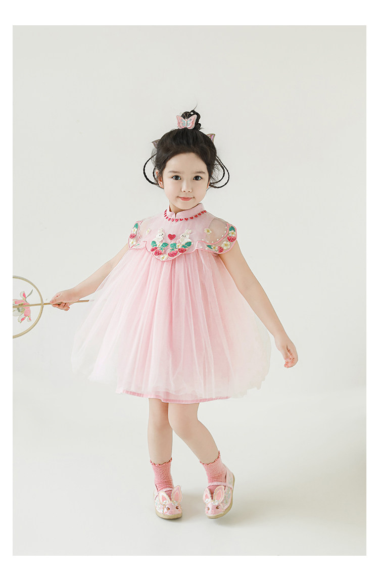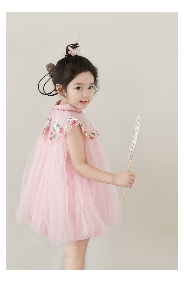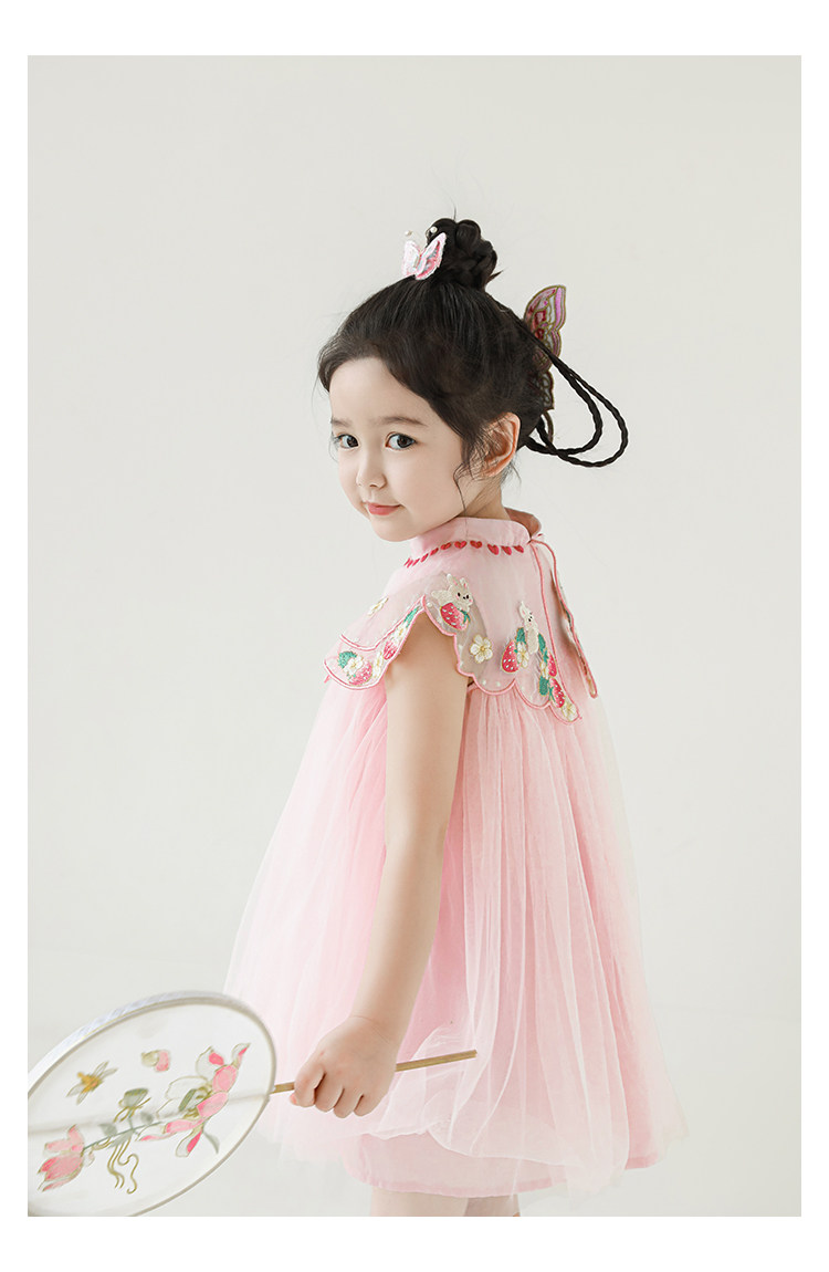 Wuri Boo 한 소녀의 중공업 구름 어깨 새로운 중국 공주 원사 스커트 여름 어린이 중국 스타일 한푸 스커트