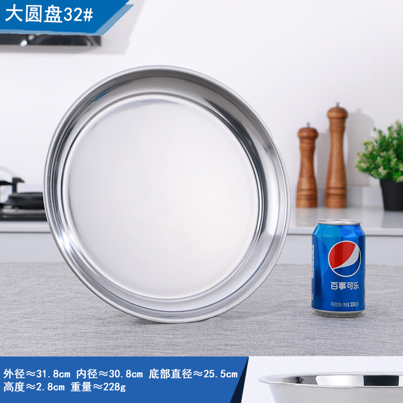 원형 디스크 딥 디스크 디너 플레이트 가정용 접시 접시 철판 스테인레스 스틸 플레이트 바베큐 플레이트 원형 트레이 플랫 플레이트 과일 플레이트