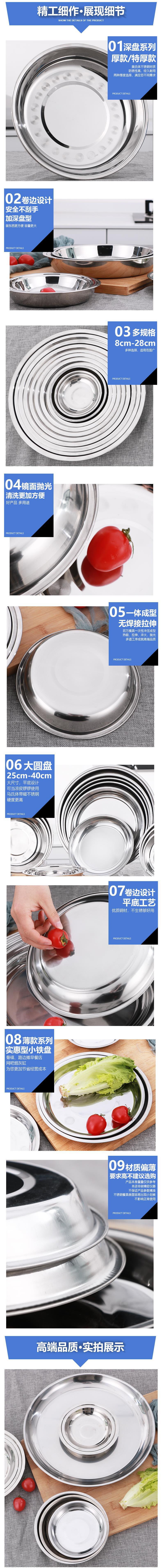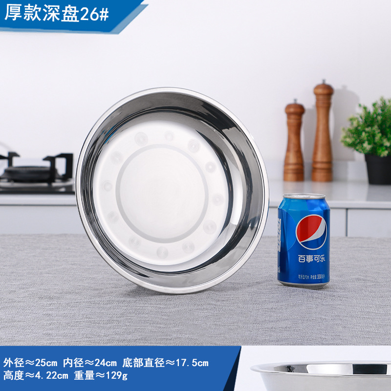 원형 디스크 딥 디스크 디너 플레이트 가정용 접시 접시 철판 스테인레스 스틸 플레이트 바베큐 플레이트 원형 트레이 플랫 플레이트 과일 플레이트스토어 가기
