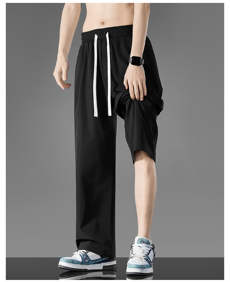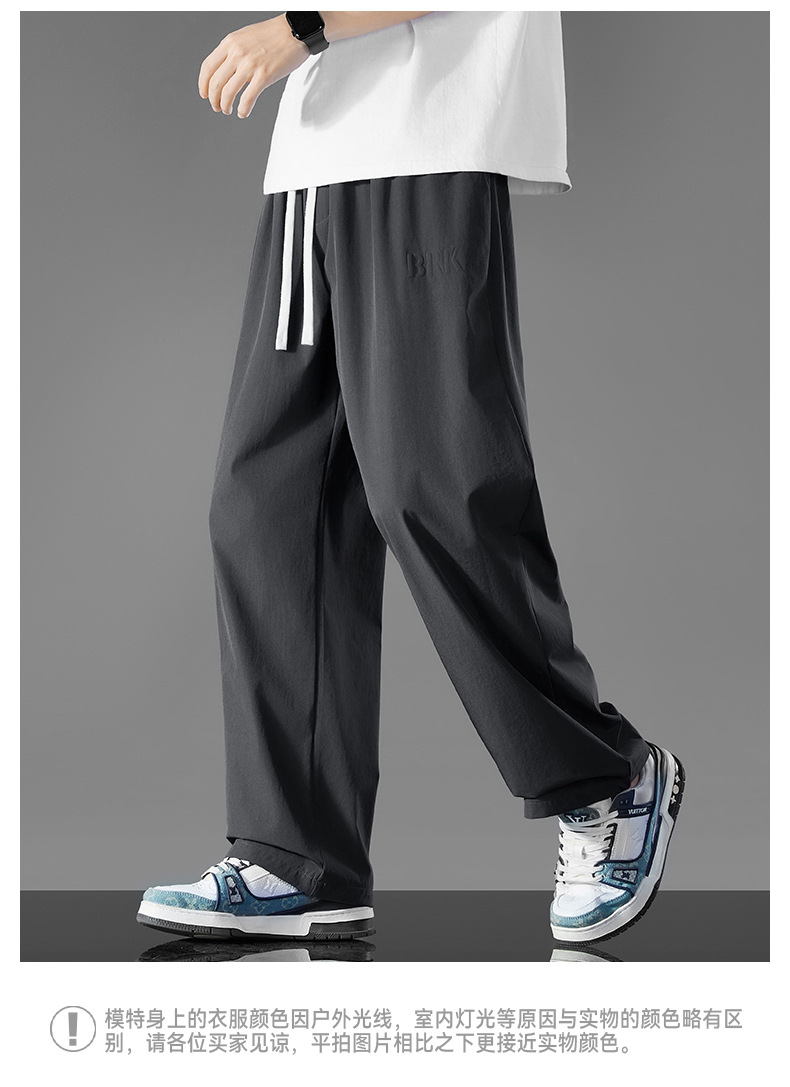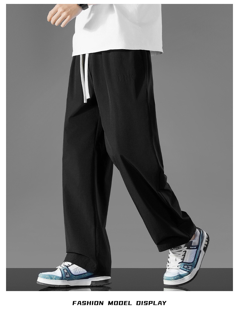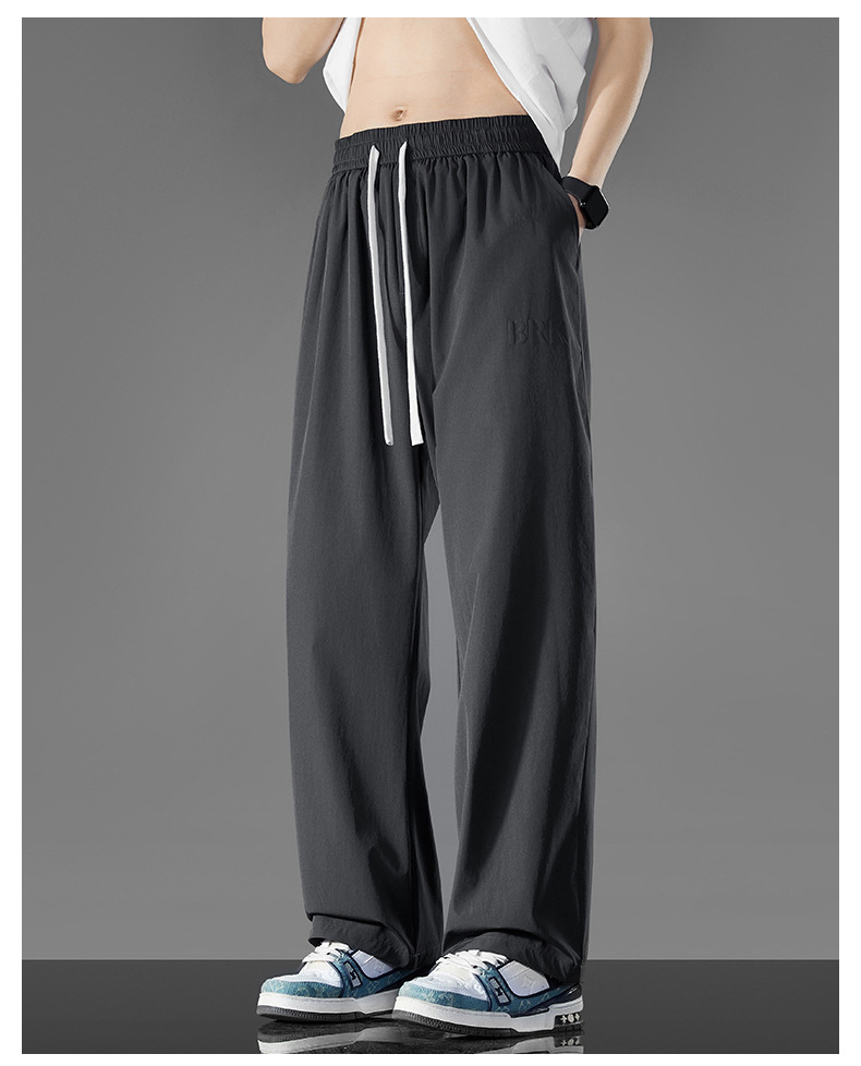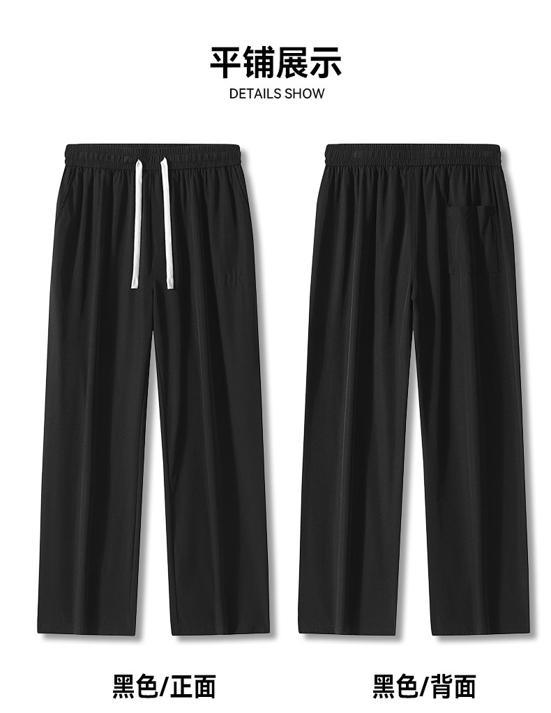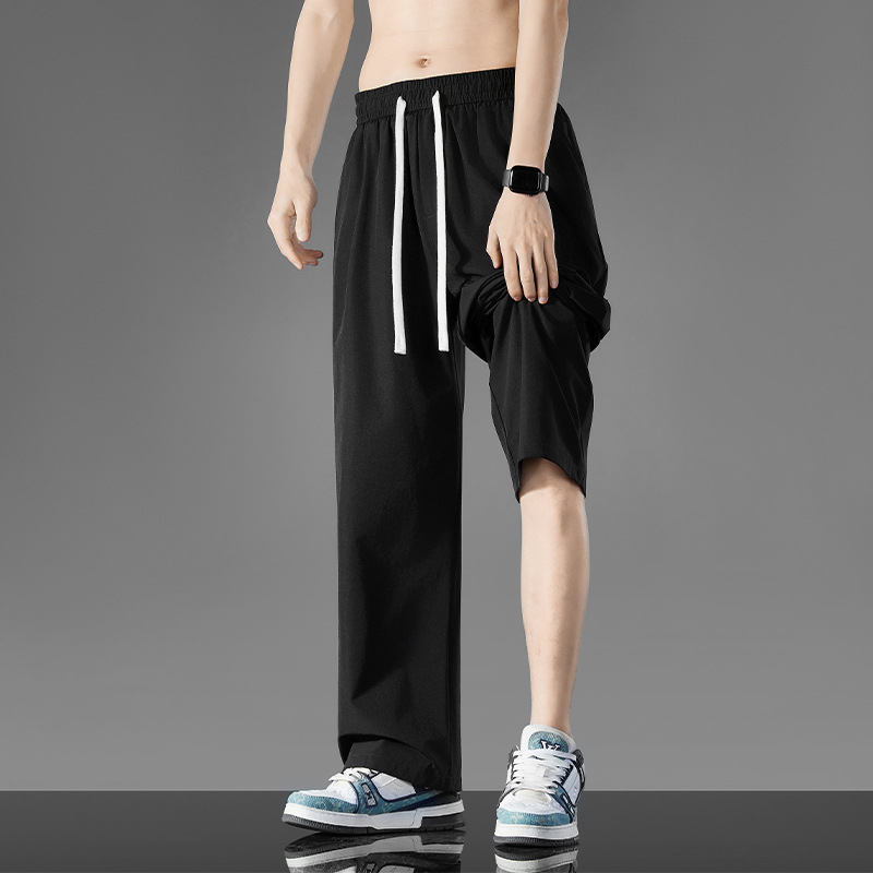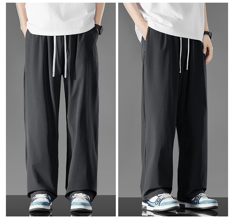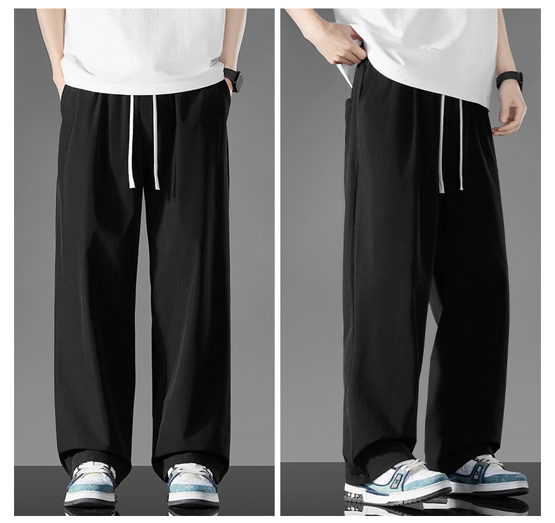 여름 새로운 홍콩 스타일 아이스 실크 경량 스트레이트 레그 와이드 레그 팬츠 남성용 비 다림질 나깅 플러스 대형 롱 에어컨 바지
