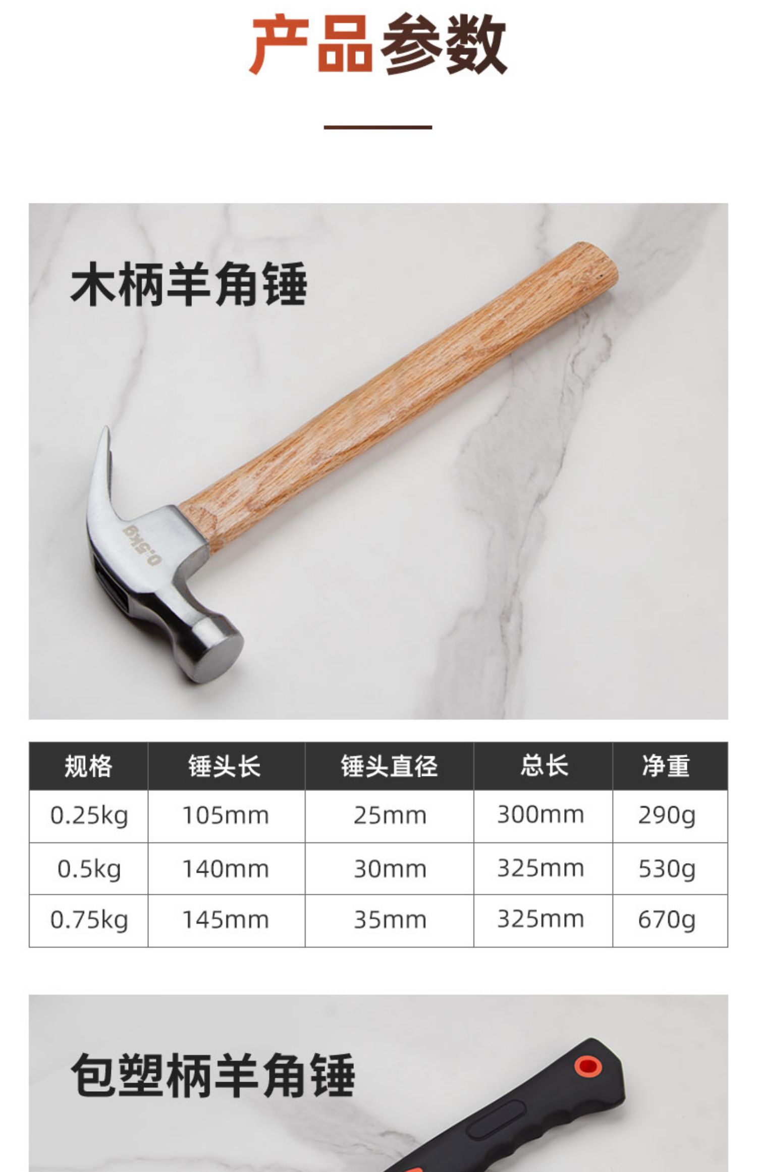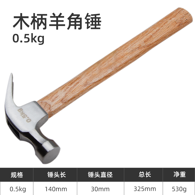 • [나무 손잡이 모델] 집게 망치 (0.5KG)