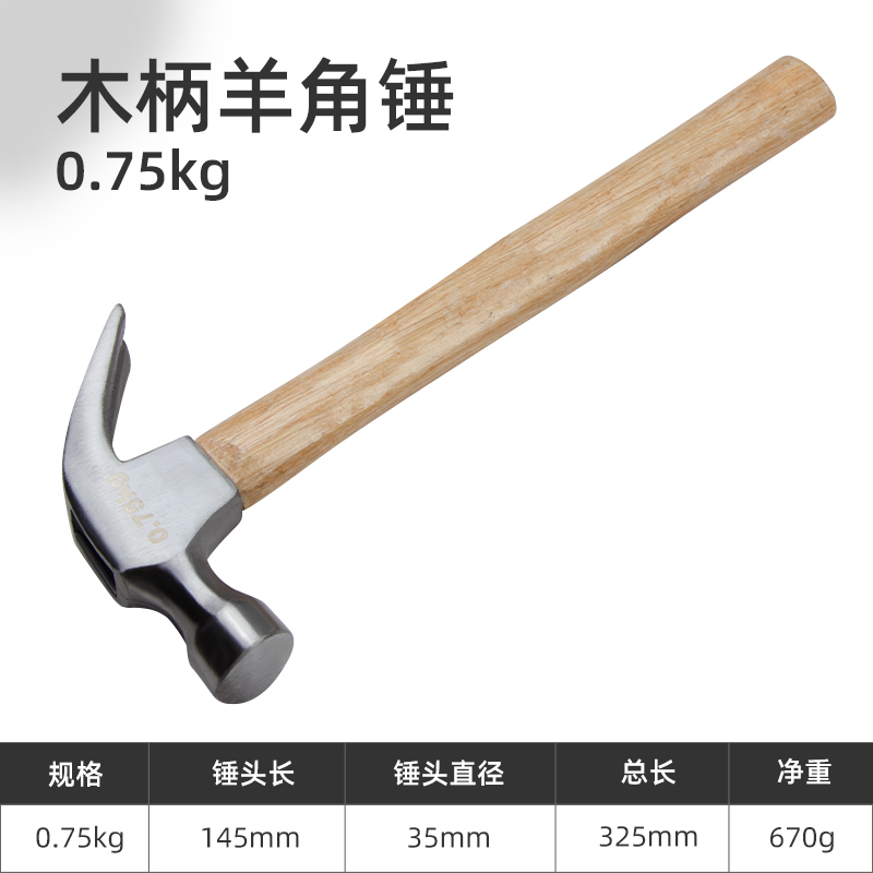 • [나무 손잡이 모델] 집게 망치 (0.75KG)