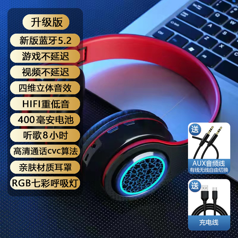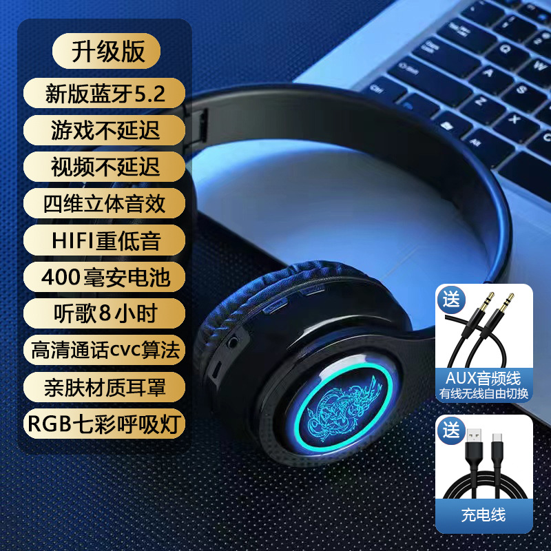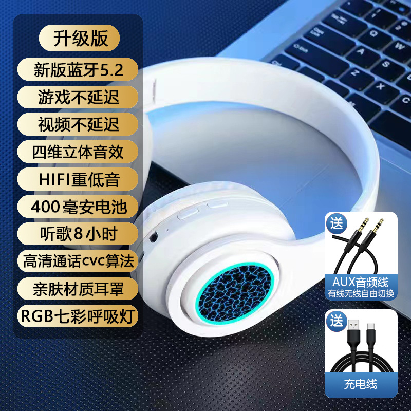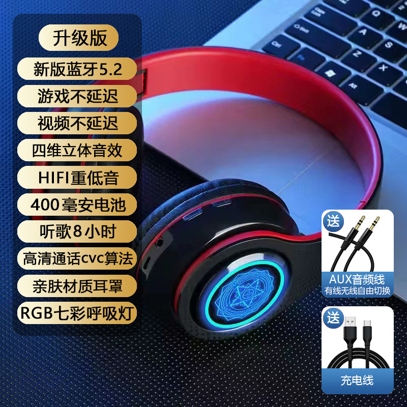 무선 헤드셋 블루투스 헤드셋 빛나는 높은 색상 가치 소녀 큰 귀 마스크 게임 특별 학생 에디션 소년스토어 가기