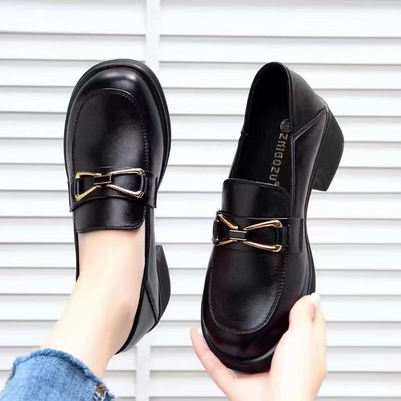여성용 블랙 로퍼 2025 가을 신상 플랫폼 두꺼운 밑창 jk 신발은 발을 보여줍니다. 작은 영국 스타일의 작은 가죽 신발스토어 가기