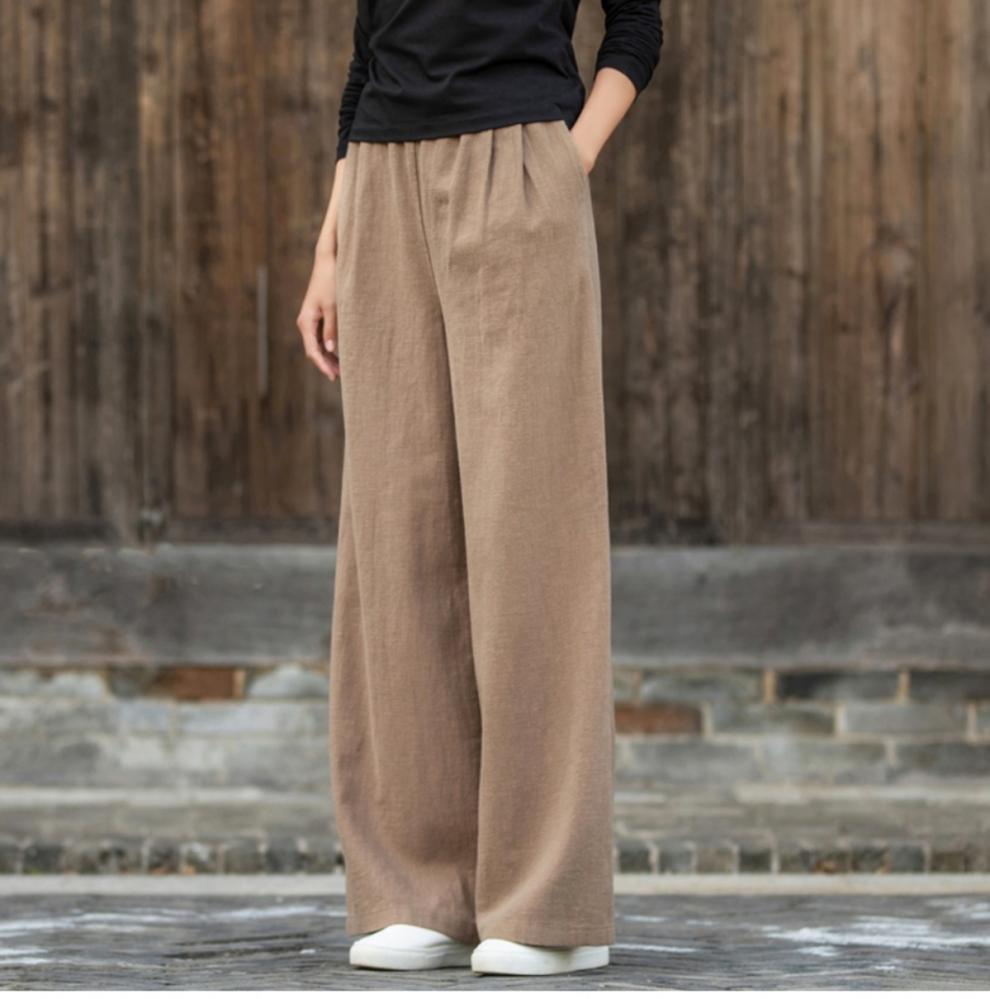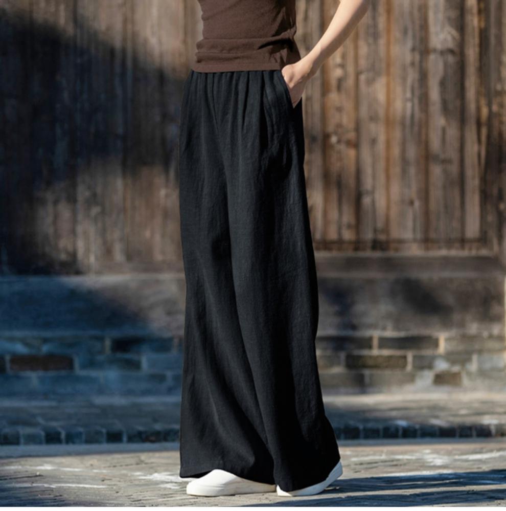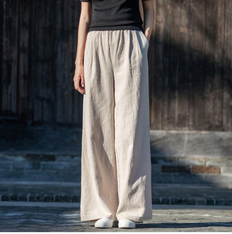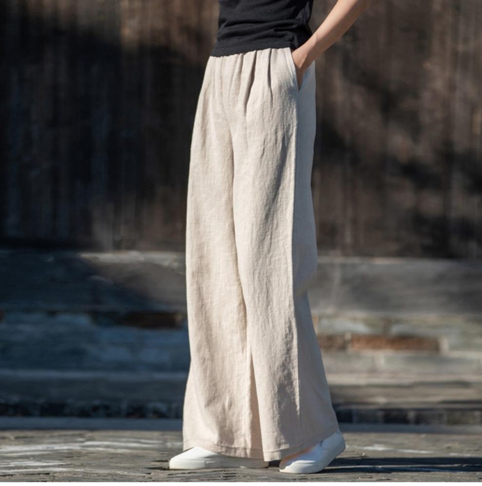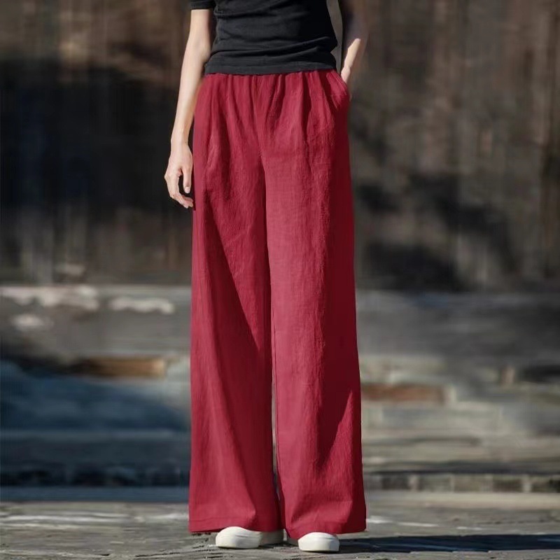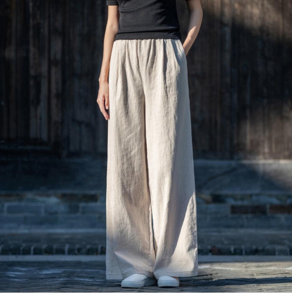 코튼 앤 리넨 와이드 레그 팬츠 2025 새로운 도착 봄과 여름 예술적 캐주얼 팬츠 와이드 레그 팬츠 린넨 올 매치 여자 롱 팬츠
