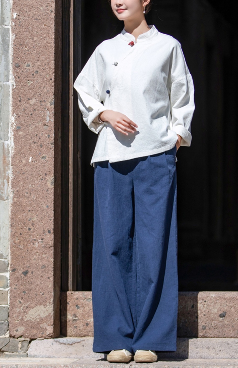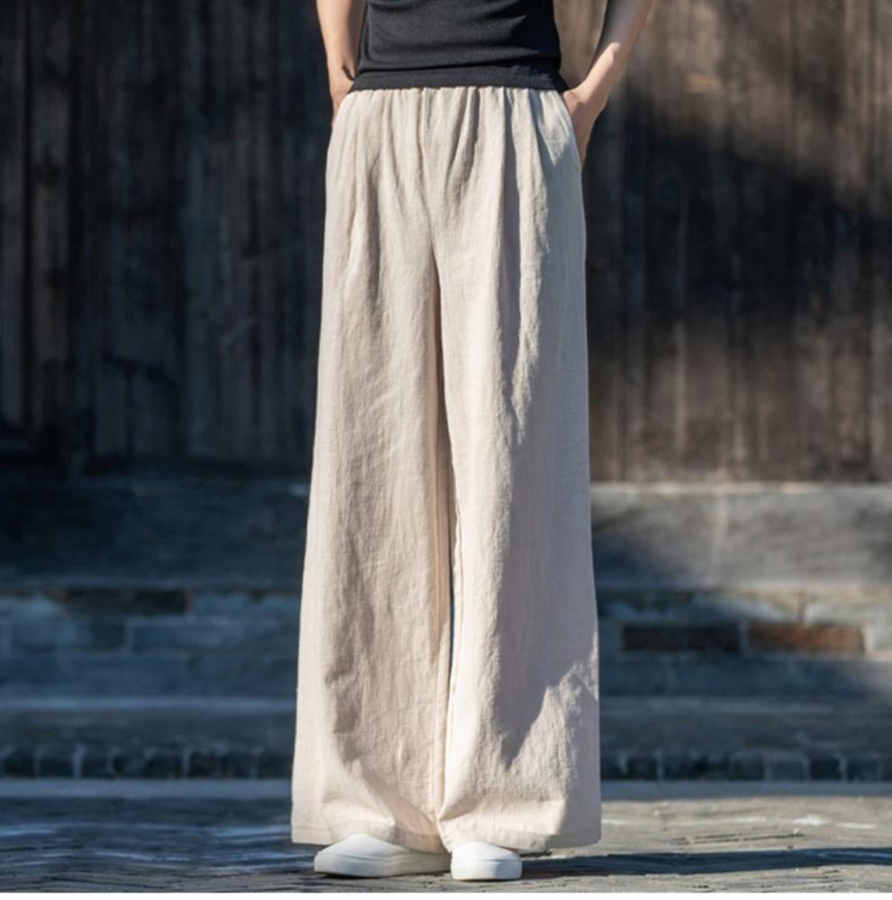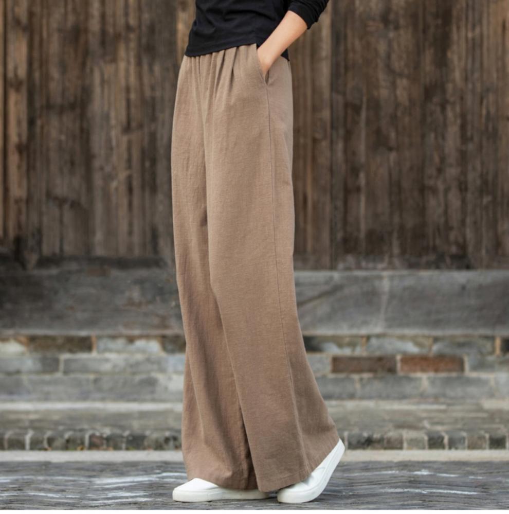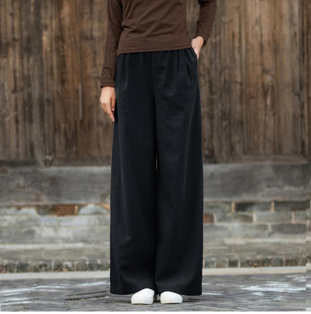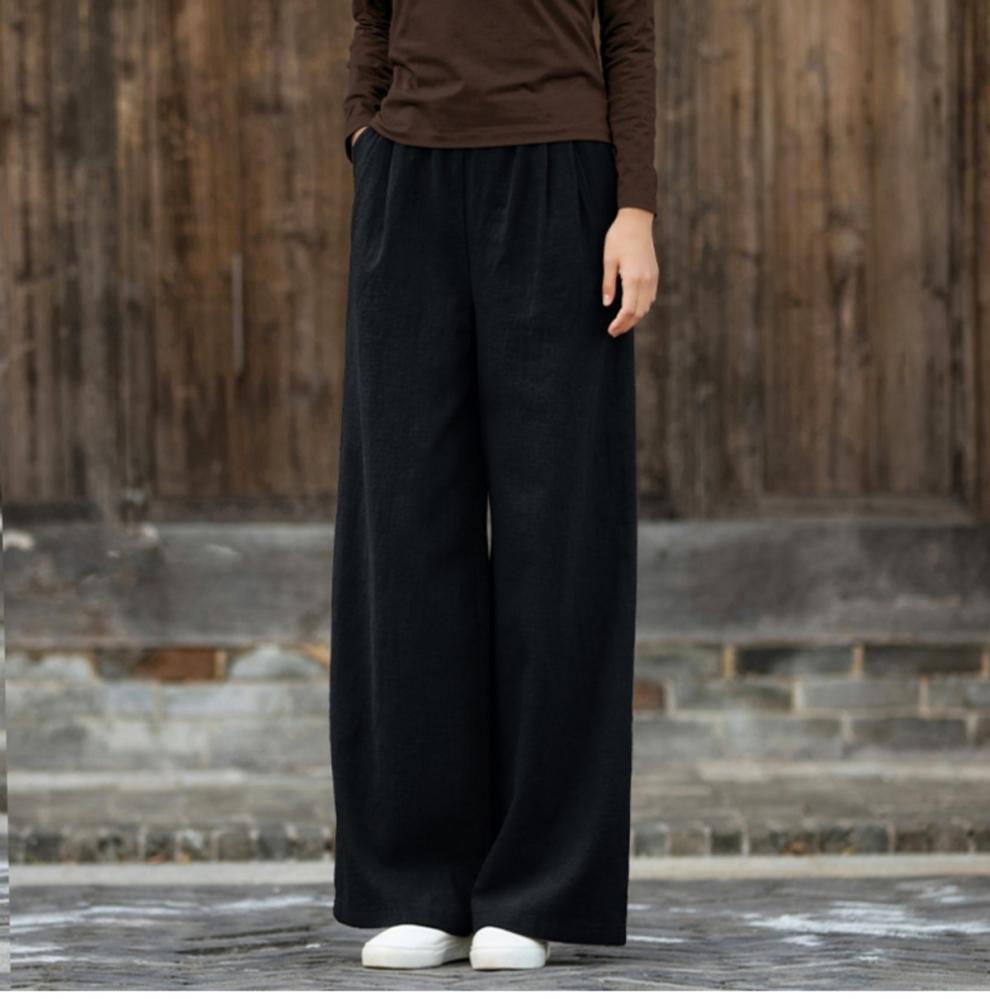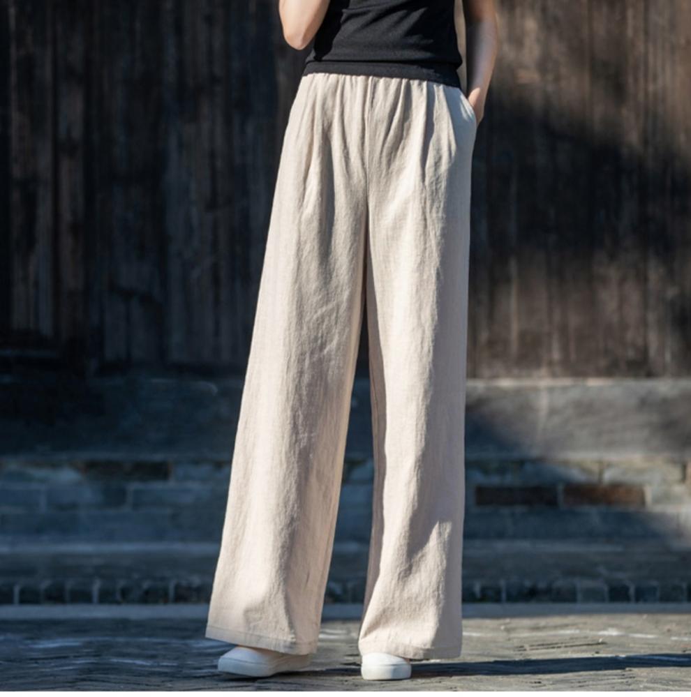 코튼 앤 리넨 와이드 레그 팬츠 2025 새로운 도착 봄과 여름 예술적 캐주얼 팬츠 와이드 레그 팬츠 린넨 올 매치 여자 롱 팬츠