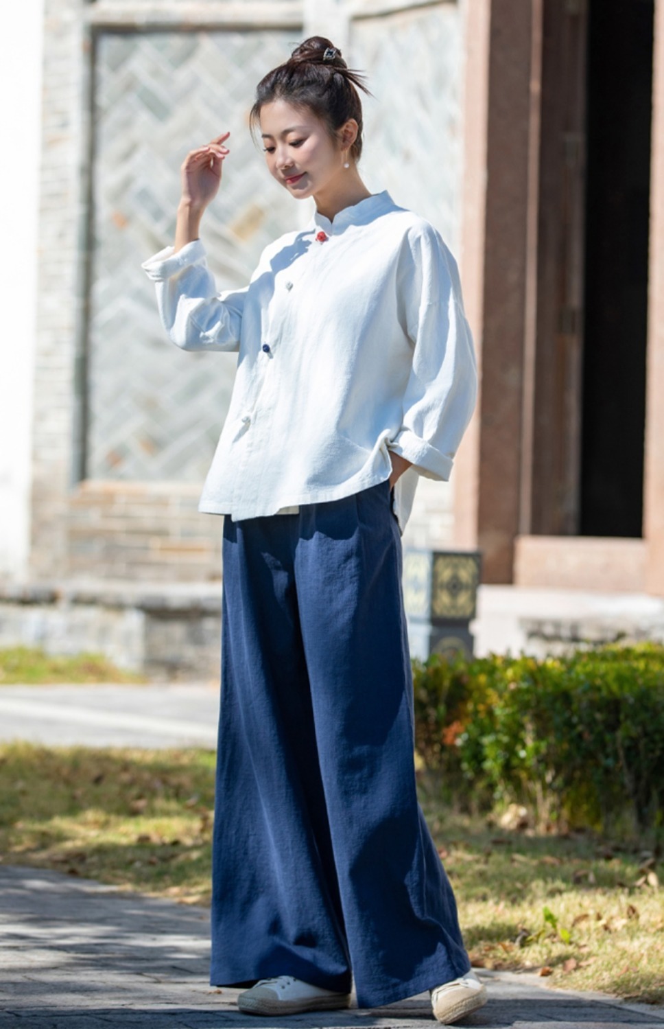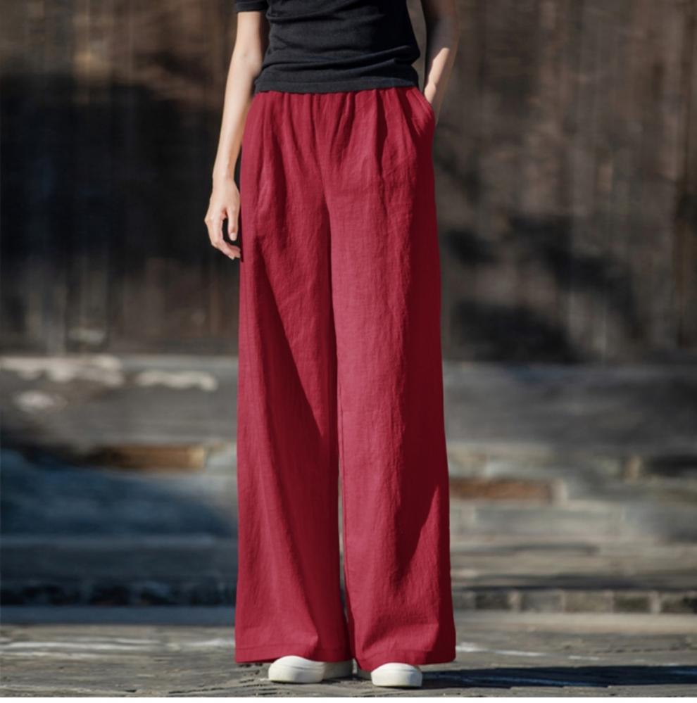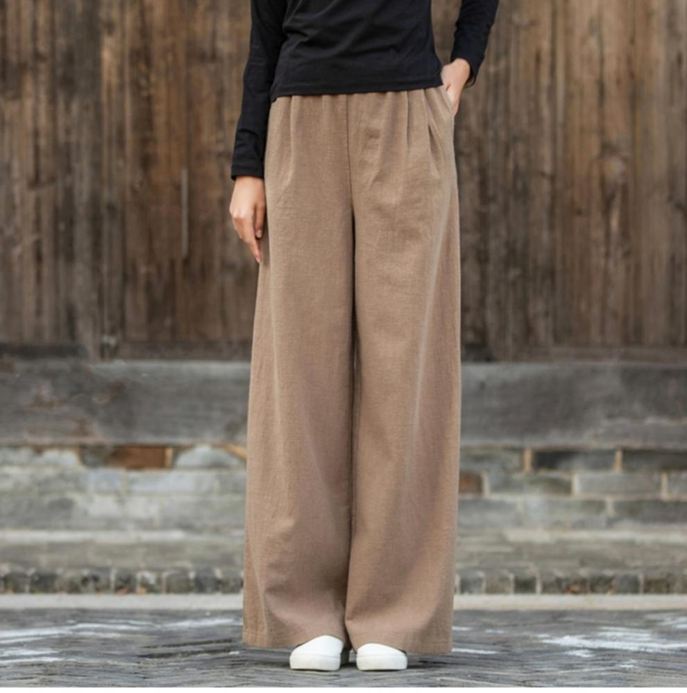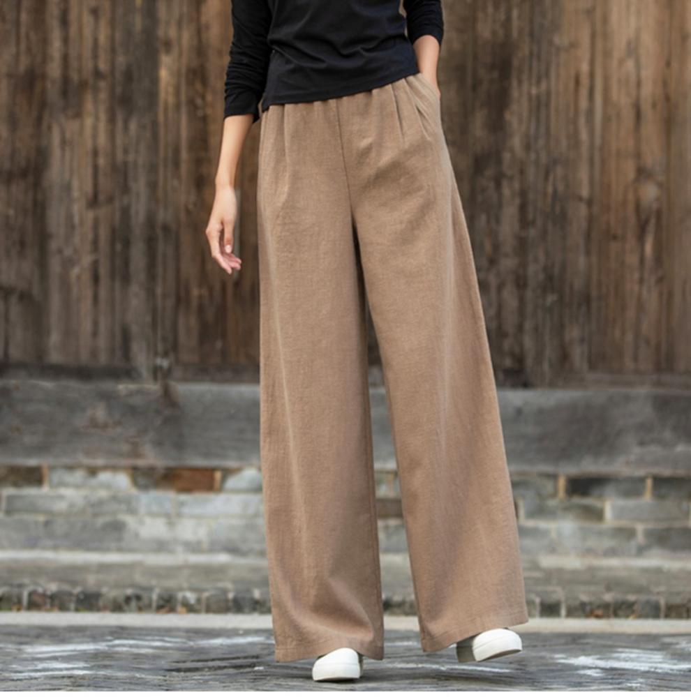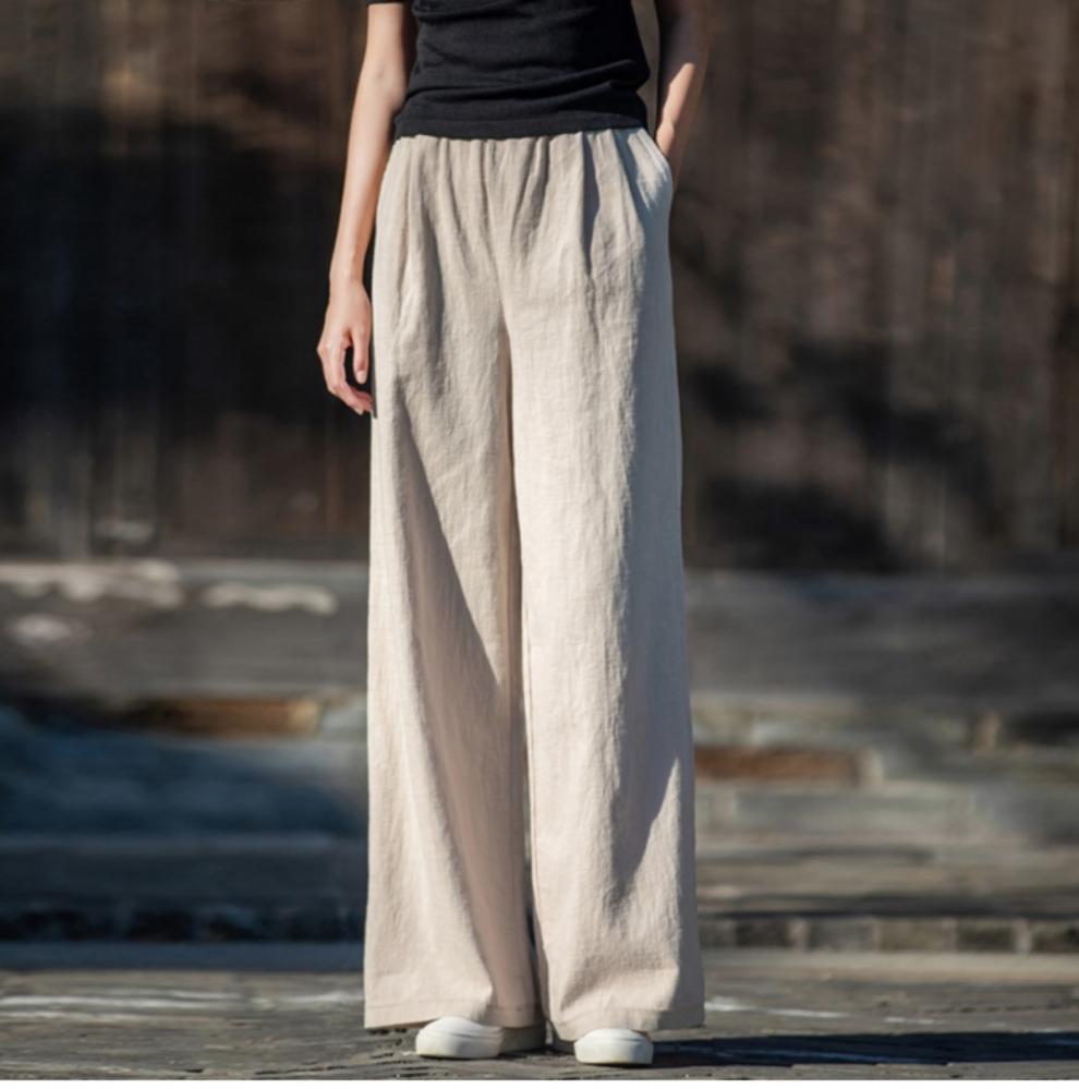 코튼 앤 리넨 와이드 레그 팬츠 2025 새로운 도착 봄과 여름 예술적 캐주얼 팬츠 와이드 레그 팬츠 린넨 올 매치 여자 롱 팬츠스토어 가기