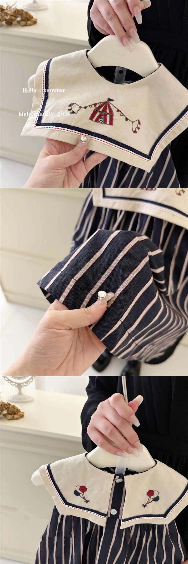 한국 2025 새로운 스타일 레트로 웨스턴 스타일 세트 수 놓은 줄무늬 소녀 여름 민소매 원피스 얇고 내구성이 있습니다.스토어 가기