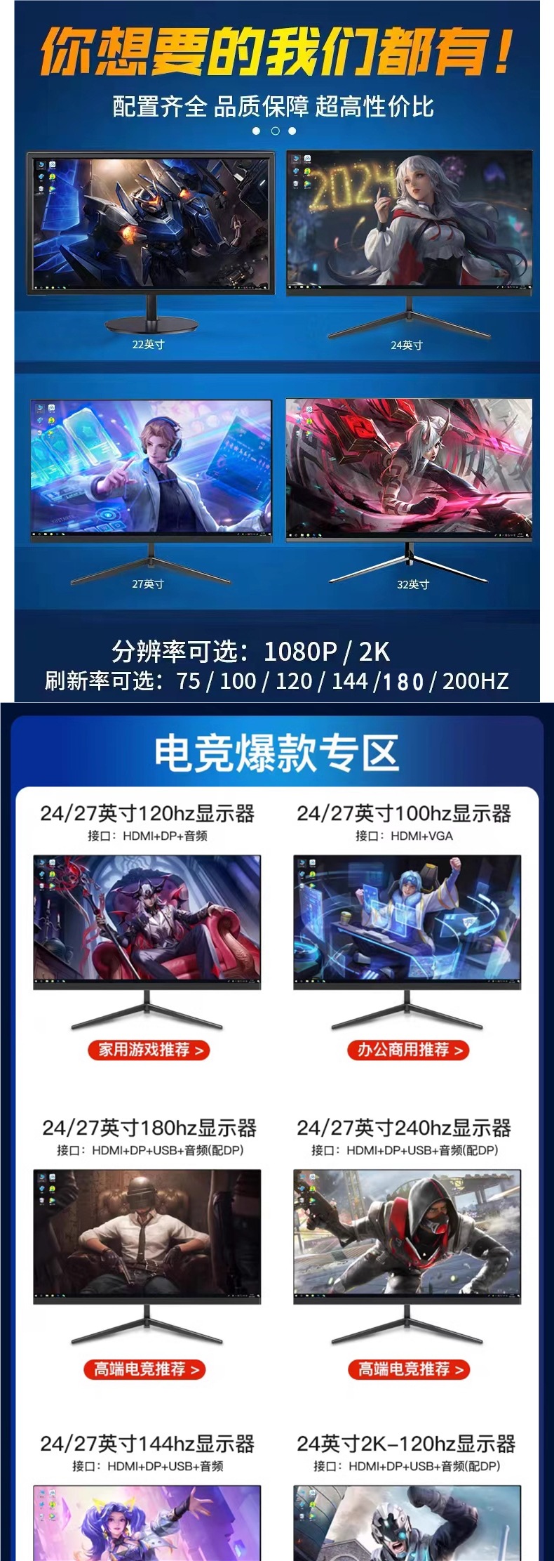 고화질 사무실 모니터 24 인치 hz 데스크탑 컴퓨터 외부 화면 2k144hz 인치 27180 노트북 없음