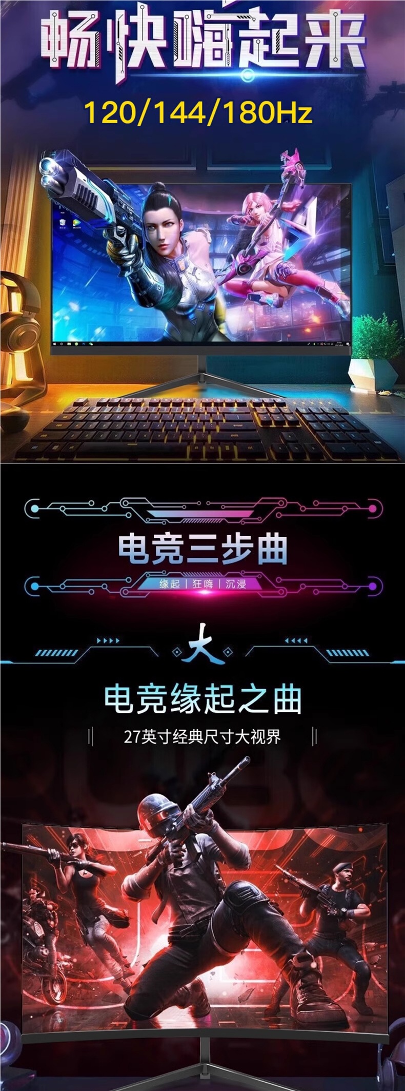 • 27inch 커브드 블랙 [1K HD + 180HZ E-스포츠] - 공식 표준