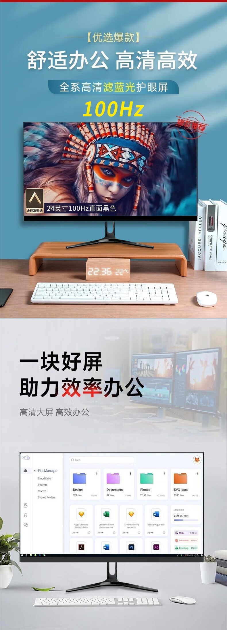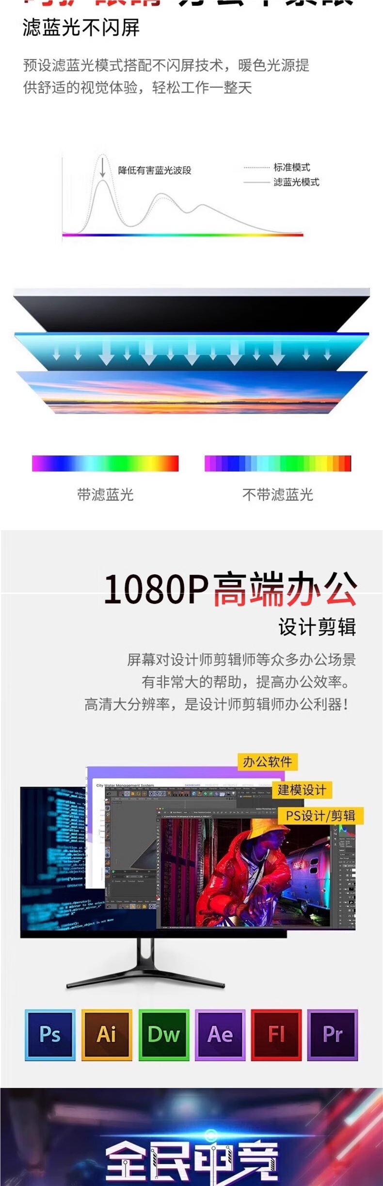 • 24inch 대면 블랙 [1K HD + 120HZ e스포츠] 좁은 베젤 - 공식 표준